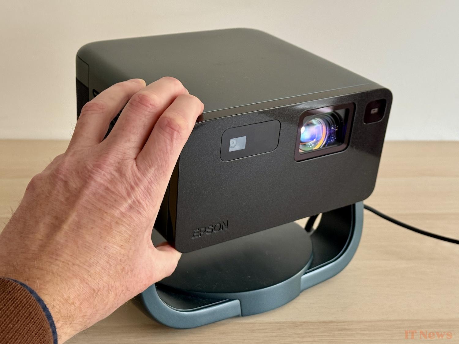 Epson is not just about printers. Home cinema enthusiasts know that the Japanese brand has also made a specialty of video projectors of all kinds. In the compact and transportable category, this EF-22 model was accompanied during its presentation by the EF-21, which has almost the same characteristics (it does not have a passive radiator), but does not have a support.
