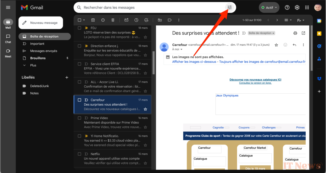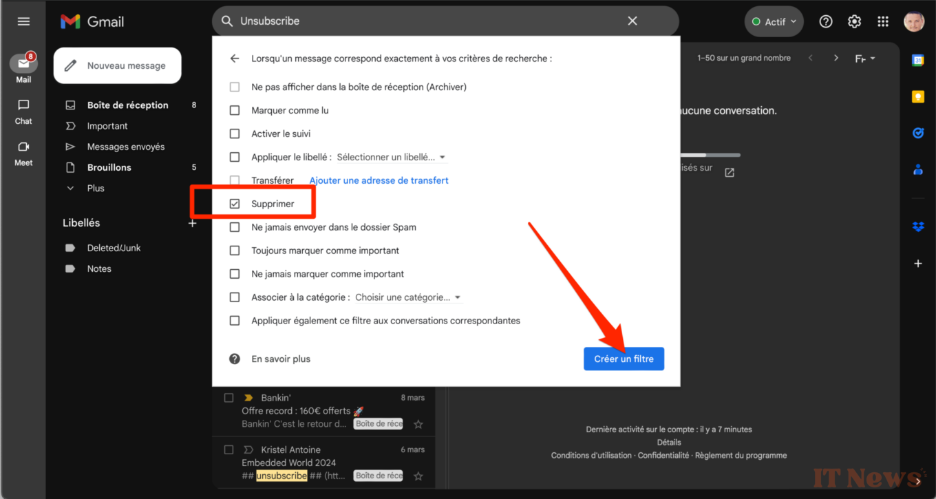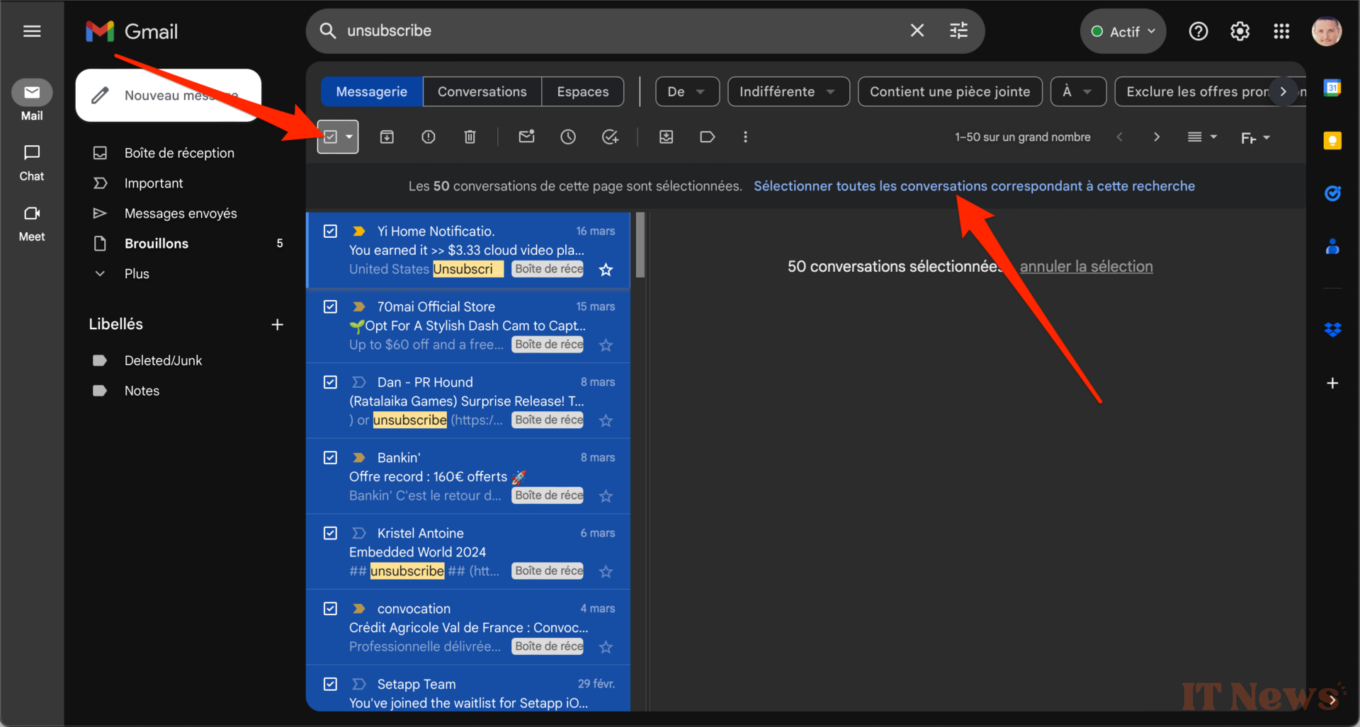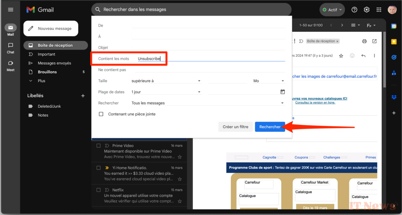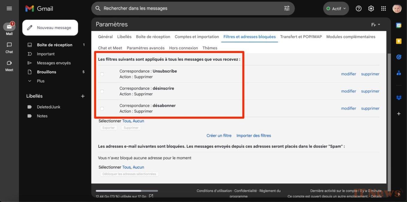 Then repeat the same operation with other terms likely to be found in promotional messages or newsletters: in addition to "unsubscribe", try with "unsubscribe", "unsubscribe", "unsubscribe", etc.