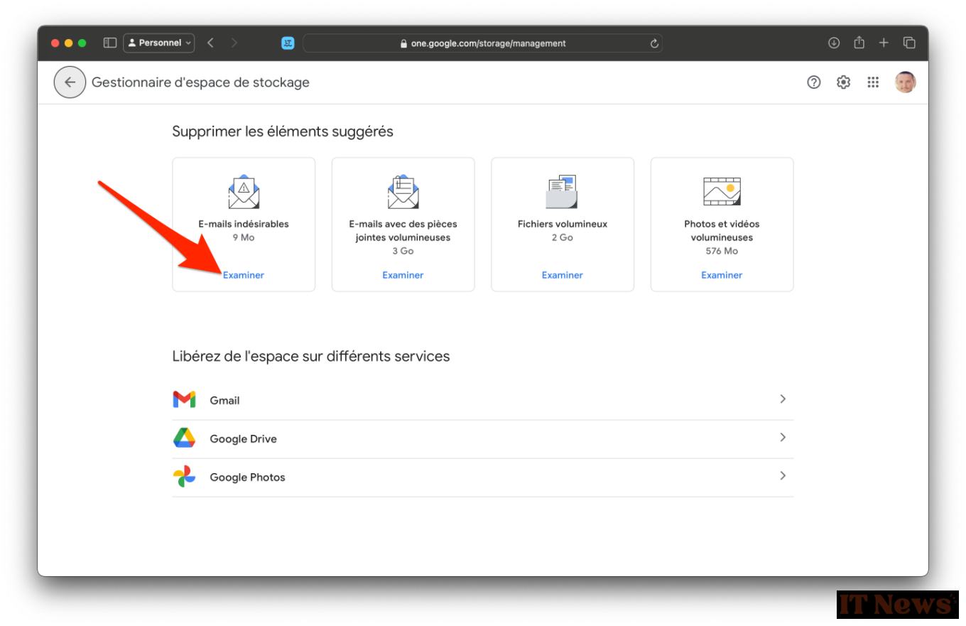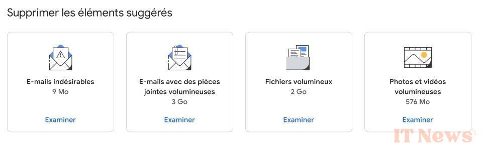 Then repeat the operation for each item suggested by Google. You will not only delete data stored in Gmail, but also items hosted on your Google Drive space, or photos and videos synchronized on your Google Photos account.