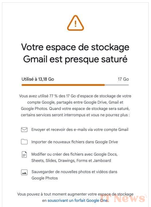 The moment you've been dreading for months (or weeks) has finally arrived. Your Google storage space is almost full, compromising the proper reception of your emails on Gmail. In any case, this is what Google has just announced to you in an email in which a solution is nevertheless offered to you: subscribe to a paid Google One offer to extend your storage capacity.