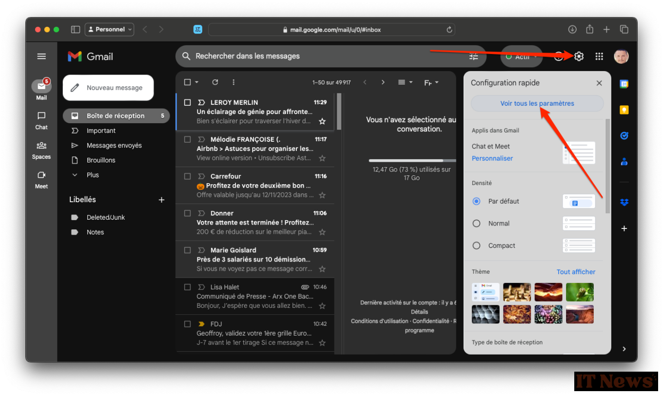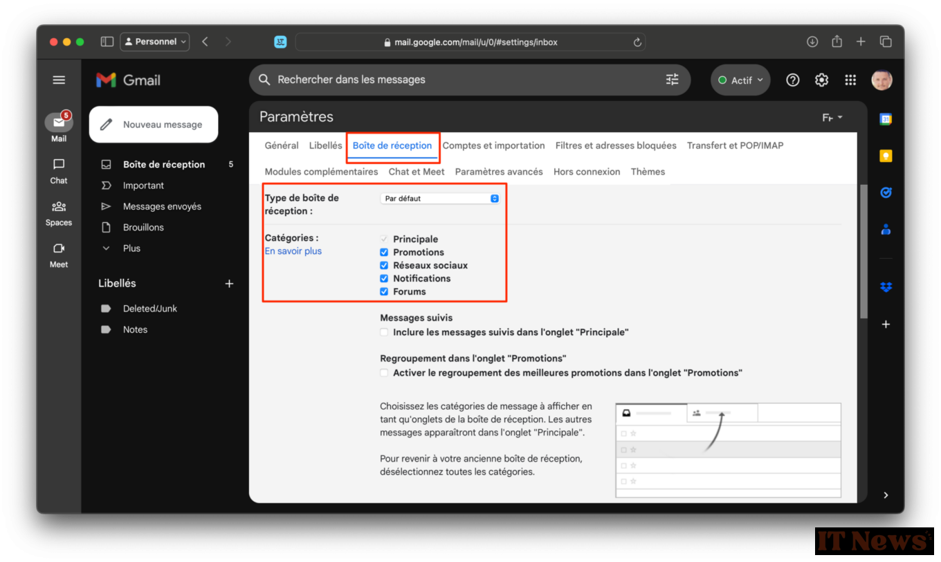 While it is possible to delete each of these messages one by one, this operation may take you hours. To go faster, you can ask Gmail to organize your messages by classifying them into categories. Once set up, the option makes it much easier to locate these messages, each category having its own tab. You can then delete all messages corresponding to each defined category at once and thus clean your Gmail box more quickly.