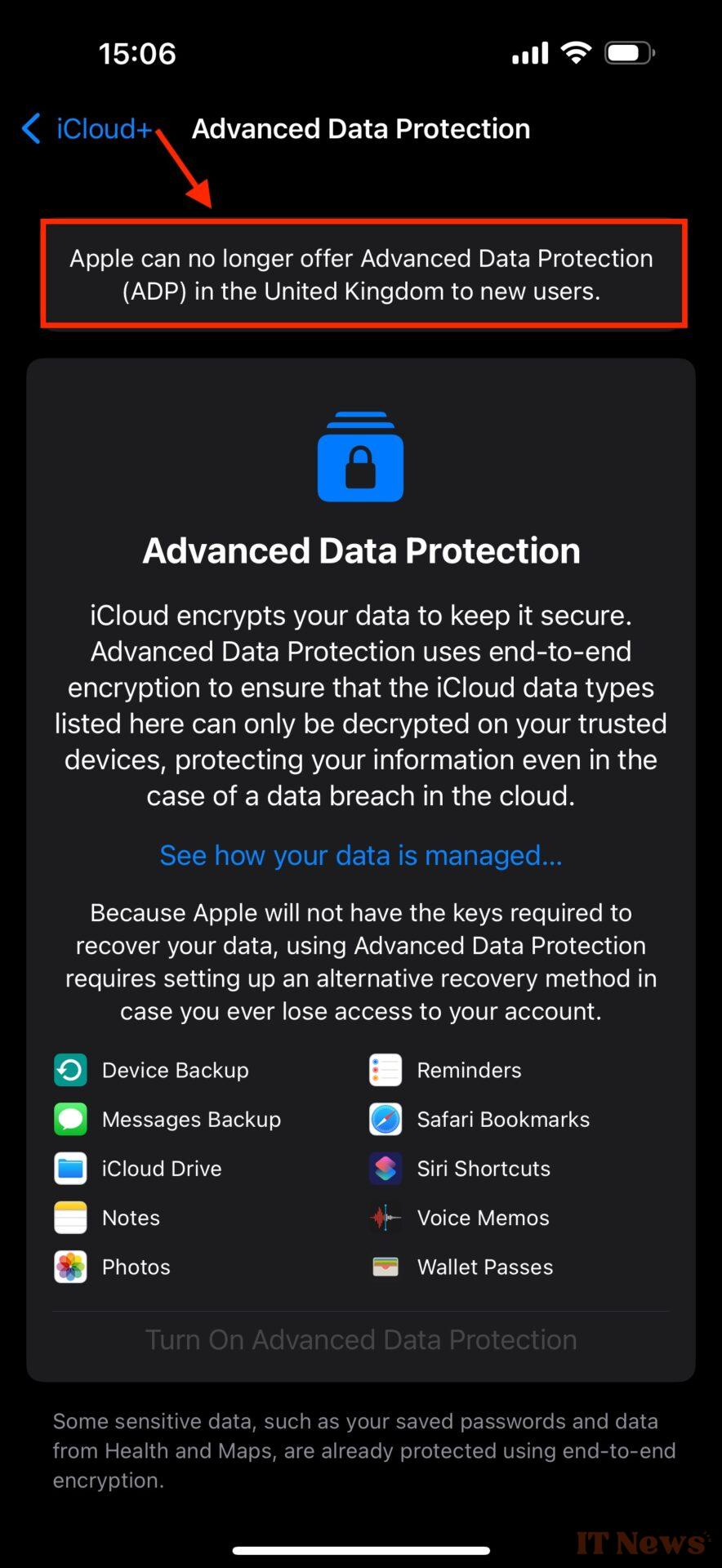 “Apple will no longer be able to offer Advanced Data Protection (ADP) in the UK to new users, and current users will eventually have to disable this security feature”, the manufacturer laments in a press release. It says it is "deeply disappointed that the protections offered by the ADP are not available to our customers in the UK, at a time when data breaches and other threats to user privacy continue to increase."