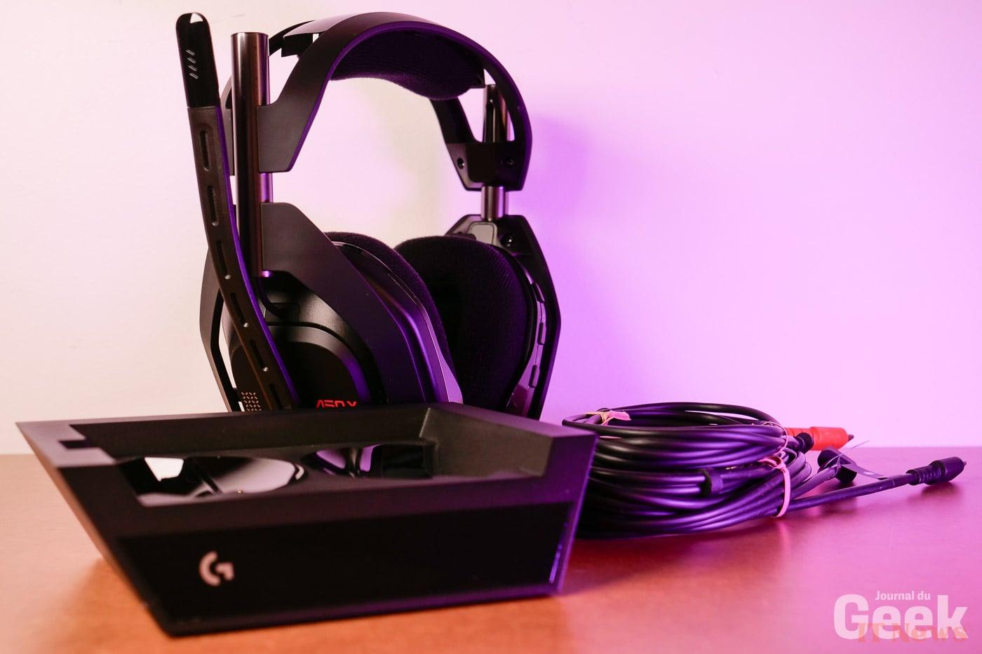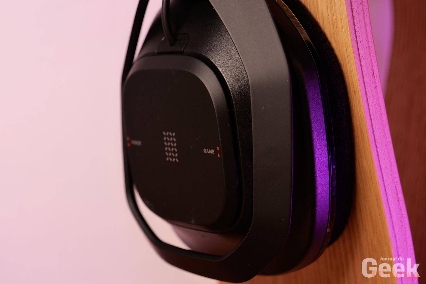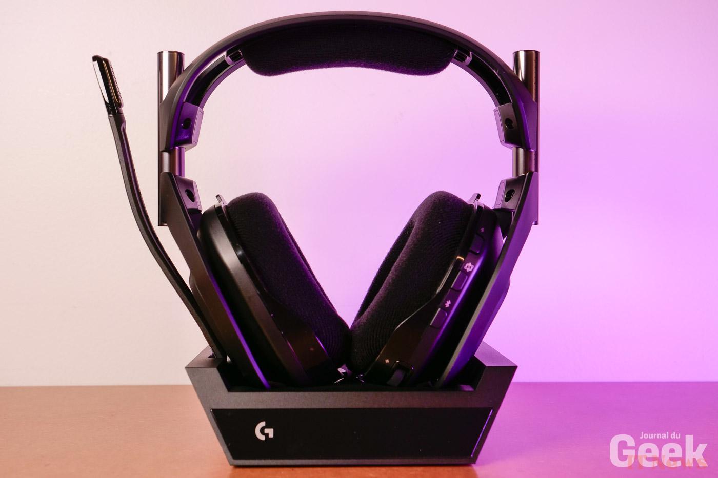 It should also be noted that the Astro A50X is also Bluetooth, which will allow you to connect the headset directly to a smartphone or the Nintendo Switch for example. Another surprise regarding the audio quality around music, the Astro A50X will not compete with a Sony WH-1000XM5 or an Apple Airpods Max but we will be very happy with it on a daily basis. As for autonomy, the Astro A50X offers a little more than 20 hours of autonomy in gaming use, which is not bad at all. In addition to that, each time we put the headset down, it recharges so there are no real autonomy concerns. The headset itself therefore takes up the design of the Astro A50 identically and offers an excellent plastic finish. It is comfortable during gaming sessions and we may blame the earpieces which heat up a little too much during long hours! We would have perhaps preferred a rendering closer to leather and therefore fresher in some ways.