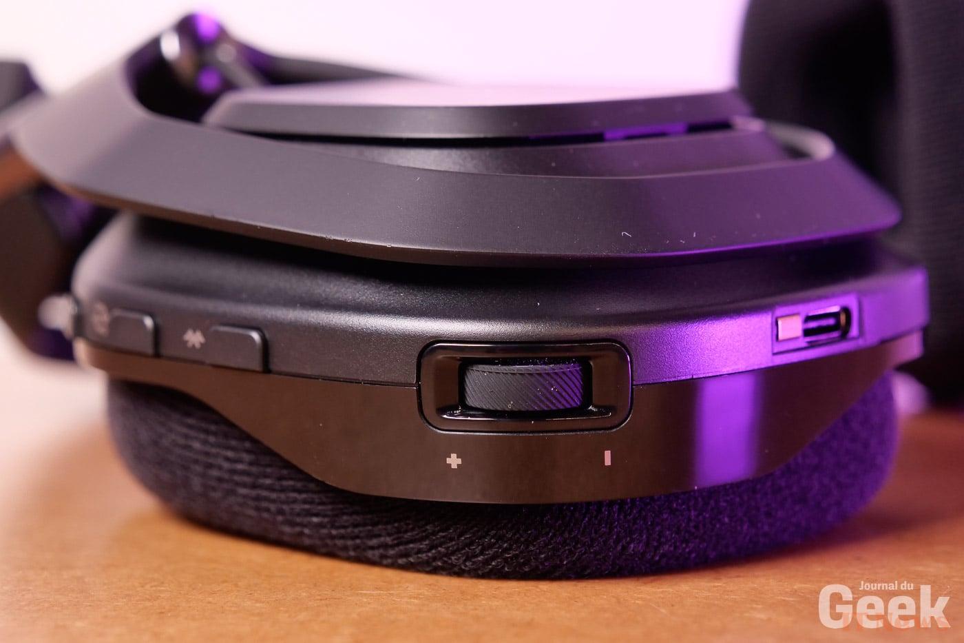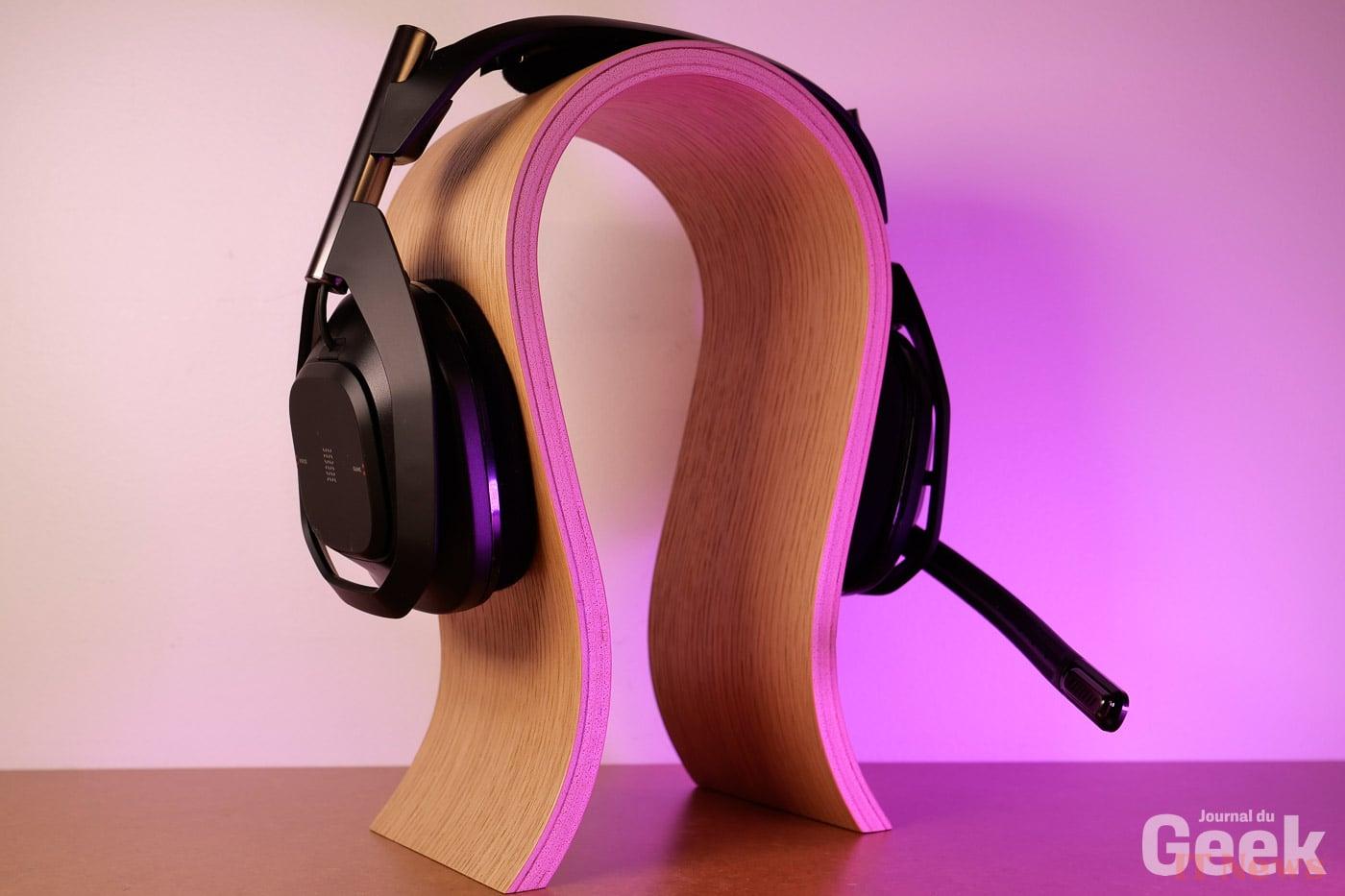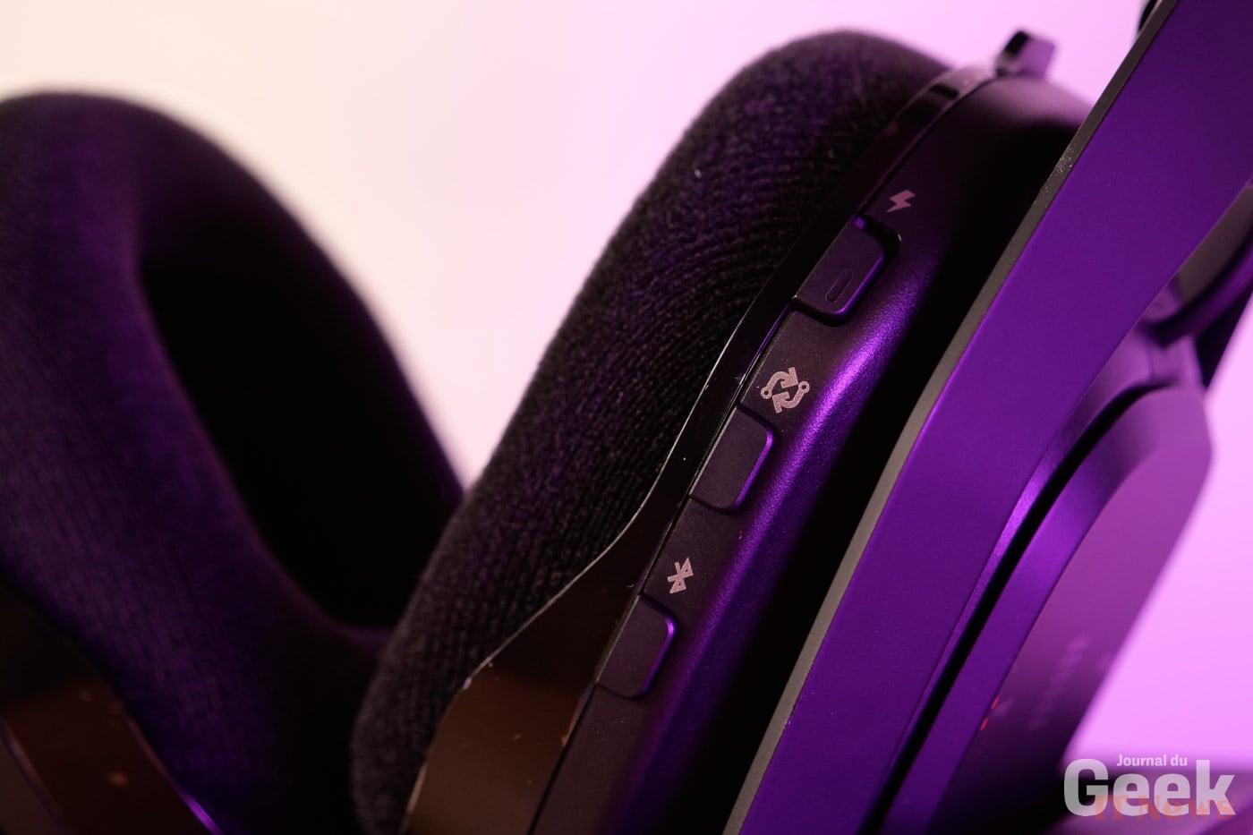 It should also be noted that the Astro A50X is also Bluetooth, which will allow you to connect the headset directly to a smartphone or the Nintendo Switch for example. Another surprise regarding the audio quality around music, the Astro A50X will not compete with a Sony WH-1000XM5 or an Apple Airpods Max but we will be very happy with it on a daily basis. As for autonomy, the Astro A50X offers a little more than 20 hours of autonomy in gaming use, which is not bad at all. In addition to that, each time we put the headset down, it recharges so there are no real autonomy concerns. The headset itself therefore takes up the design of the Astro A50 identically and offers an excellent plastic finish. It is comfortable during gaming sessions and we may blame the earpieces which heat up a little too much during long hours! We would have perhaps preferred a rendering closer to leather and therefore fresher in some ways.