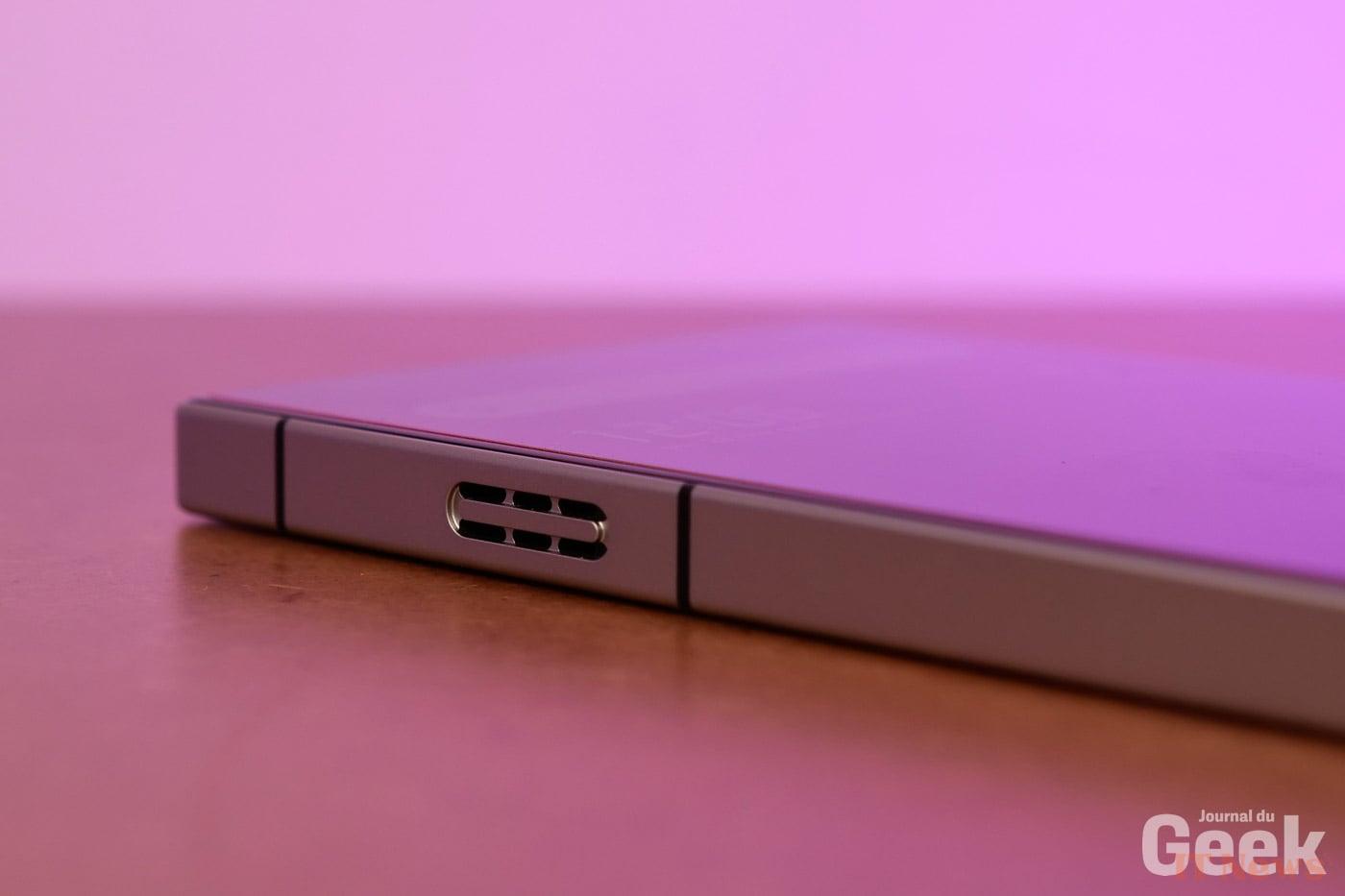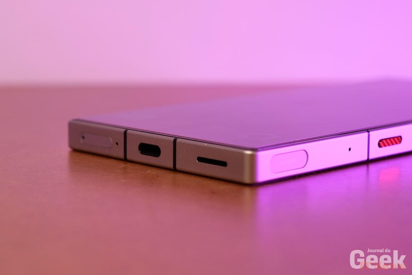 And finally, for the audio part, unsurprisingly, the RedMagic 9 Pro takes up what its predecessors offered with speakers and support for DTS: X Ultra. The two speakers are present on the front to ensure good stereo. Afterwards, they are still speakers but we can say that it is sufficient for short content on the internet. Finally, we were happy to find a jack plug, always practical.