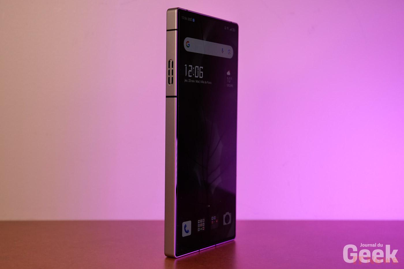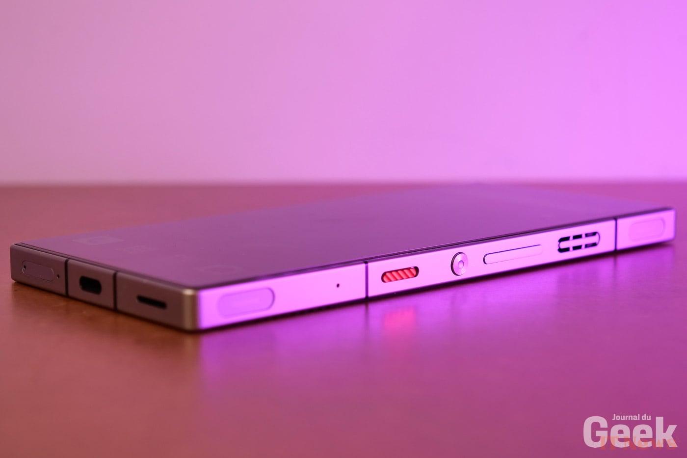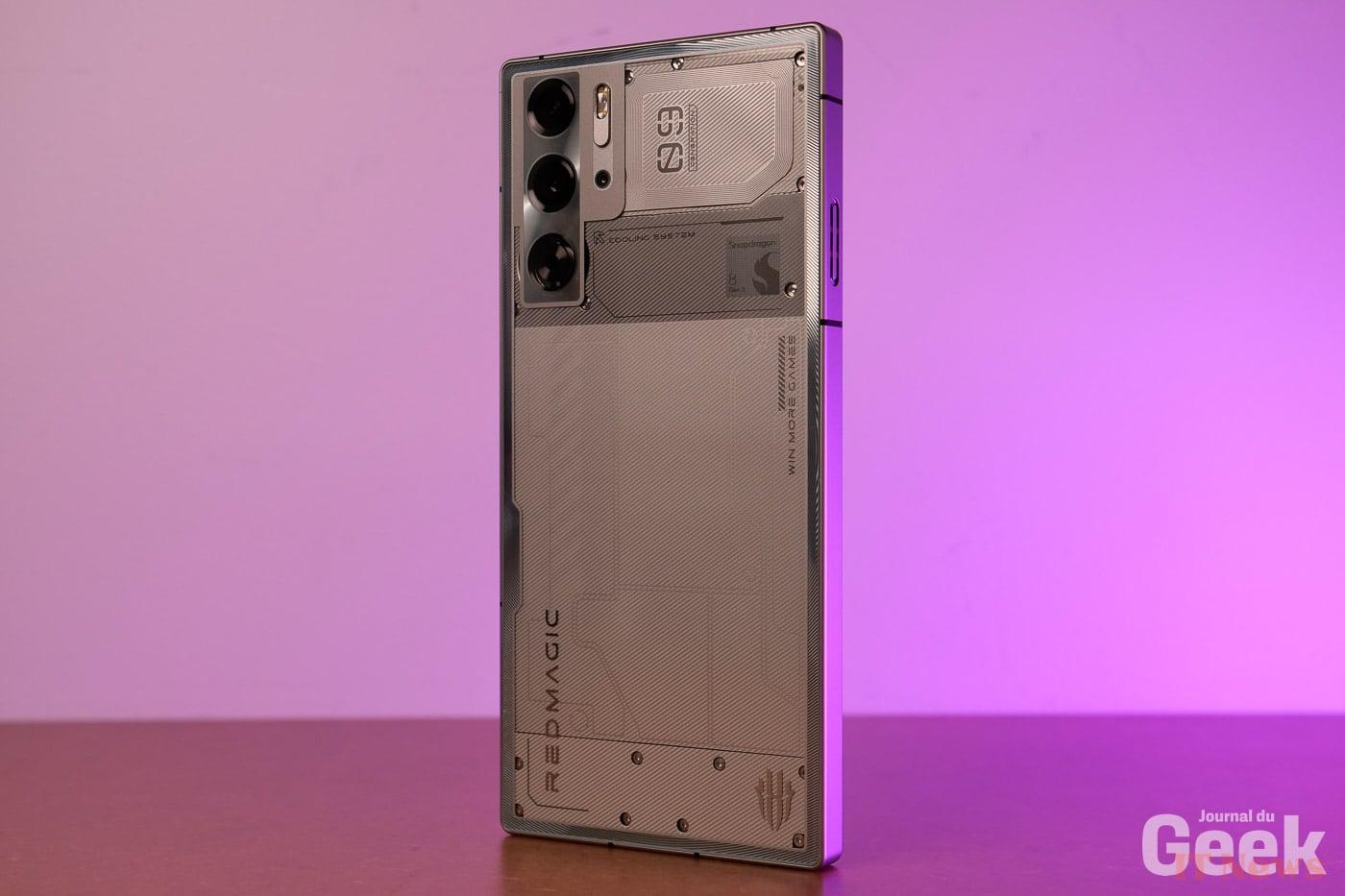 This year, Nubia did not try to reinvent itself since it was last year that the Chinese manufacturer did it! Indeed, for those who have not followed everything, exit the rounded design of gaming smartphones from a few years ago for a sharp and futuristic design. It's simple, we love it, especially with this full screen that allows you to enjoy the design of this RedMagic 9 Pro. So yes, we find some gaming elements like the small fan and the RGB lighting, it is much more discreet. When they are not working, we forget that the RedMagic 9 Pro is a gaming smartphone.