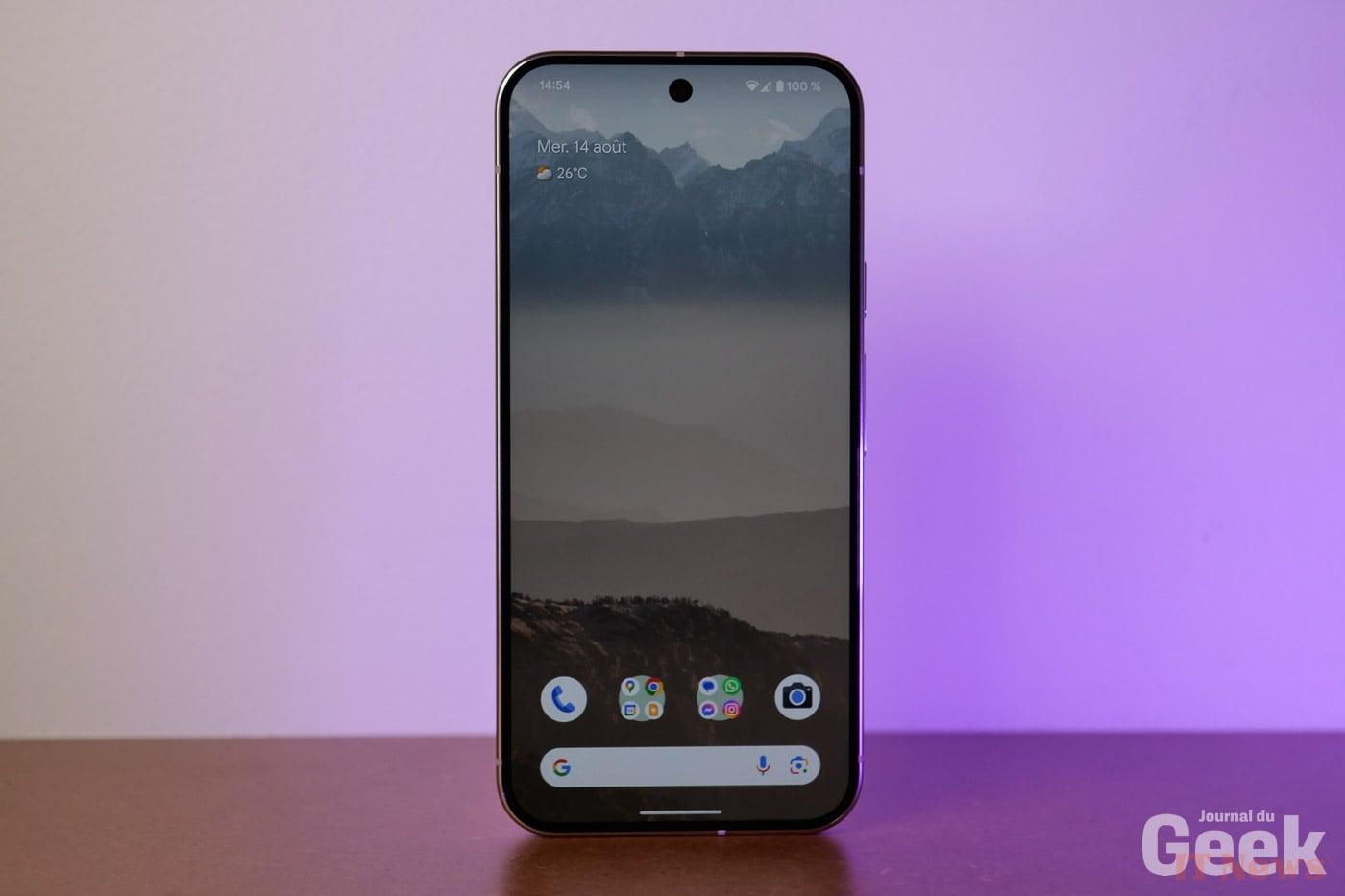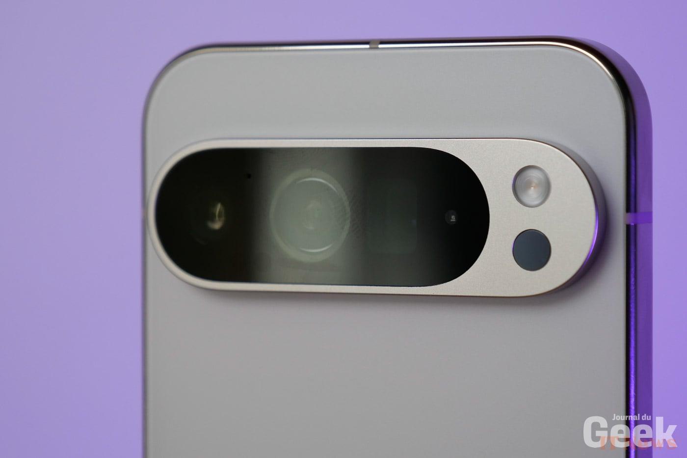 The model that brings the most changes compared to its predecessor is the Pixel 9 Pro XL. Google continues to rely on the headband, a true trademark of the Pixel, but now offers a sort of capsule to house the cameras. Moreover, this approach allows for a flat smartphone when it is on its back, which the iPhone 16 Pro Max cannot do because of prominent modules in a square. Its dimensions (162.8 x 76.6 x 8.5 mm) and its weight (221 g) are close to those of its competitors.