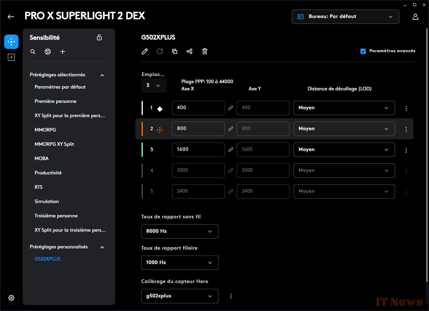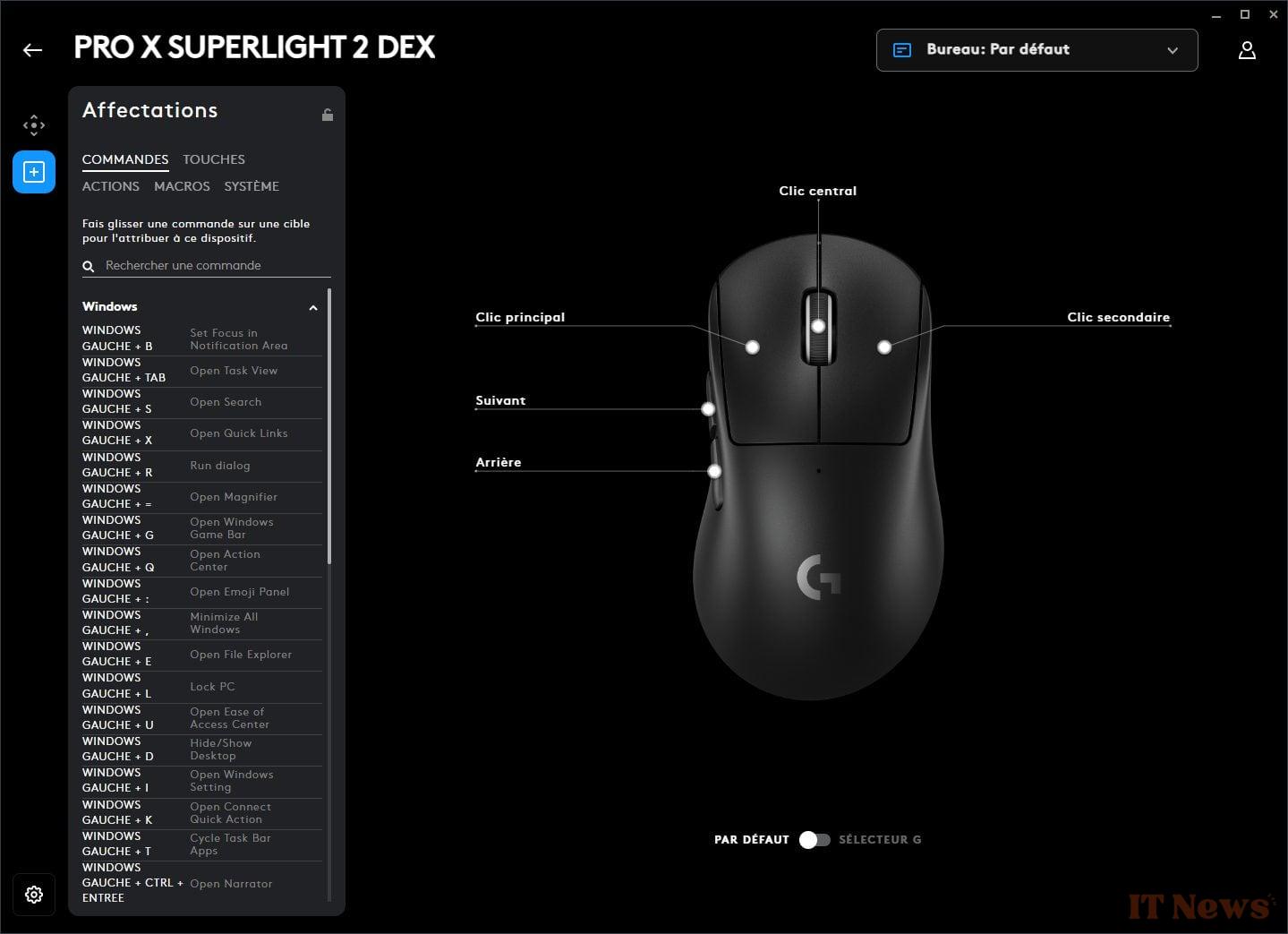 It's even quite basic and that's not a bad thing. Stripped down like the Superlight 2 DEX itself. In G Hub, you can adjust its sensitivity profiles (x and y), the take-off level, its polling frequency or even remap all the buttons with macros or alternative commands. No RGB sheet here, the Superlight 2 DEX is a performance model that does not bother with neon effects.
