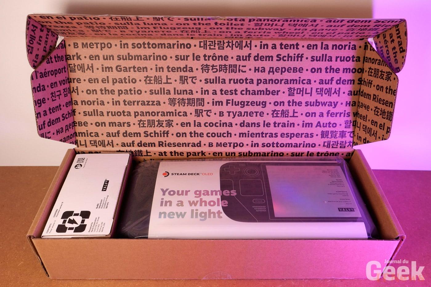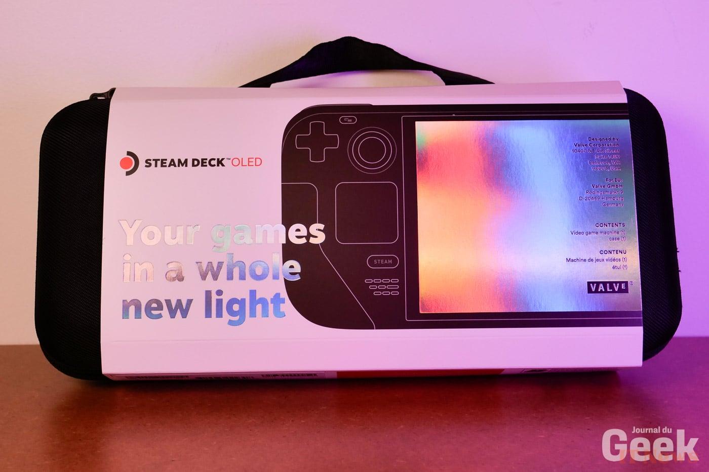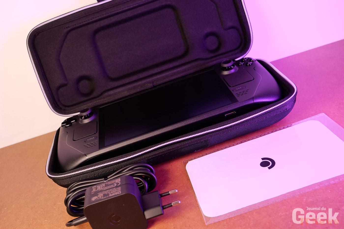 In addition to the SteamDeck itself, we find not only the 45W charger but also a protective case that offers a 2-in-1 function, and not the least. Indeed, if you don't need your charger and want a smaller and lighter case for traveling, it is integrated into the large case. Very well thought out on the part of Valve to offer a double case that can be adapted according to use. Practical.
