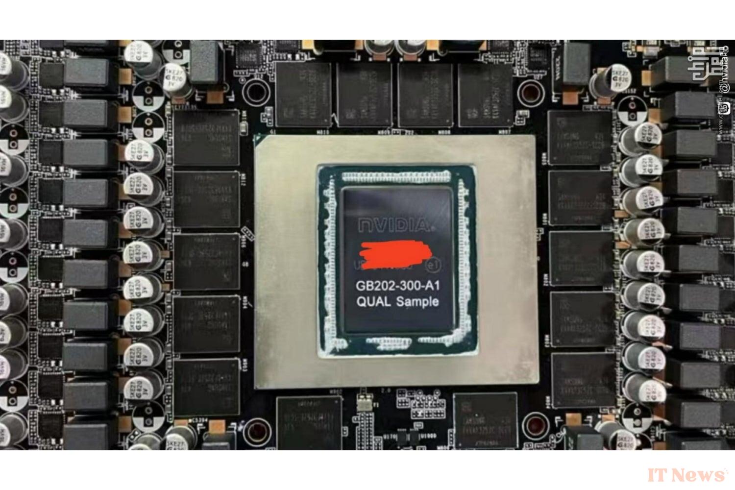 The second shot confirms the previous assumptions, with the presence of 16 GDDR7 memory chips apparently manufactured by Samsung. With an expected speed of 28 Gbps and a 512-bit memory bus, the available bandwidth would indeed reach 1792 GB/s as hoped. The GB202-300-A1 chipset – in Qualification Sample version, therefore theoretically close to the final version – is also revealed. With dimensions estimated at 24x31mm, or a surface area of 744 mm², this Blackwell GPU would be one of the most imposing offered by NVIDIA for the consumer market, since the GPUs of the RTX 2080 Ti (754 mm²) and TITAN V (815 mm²).