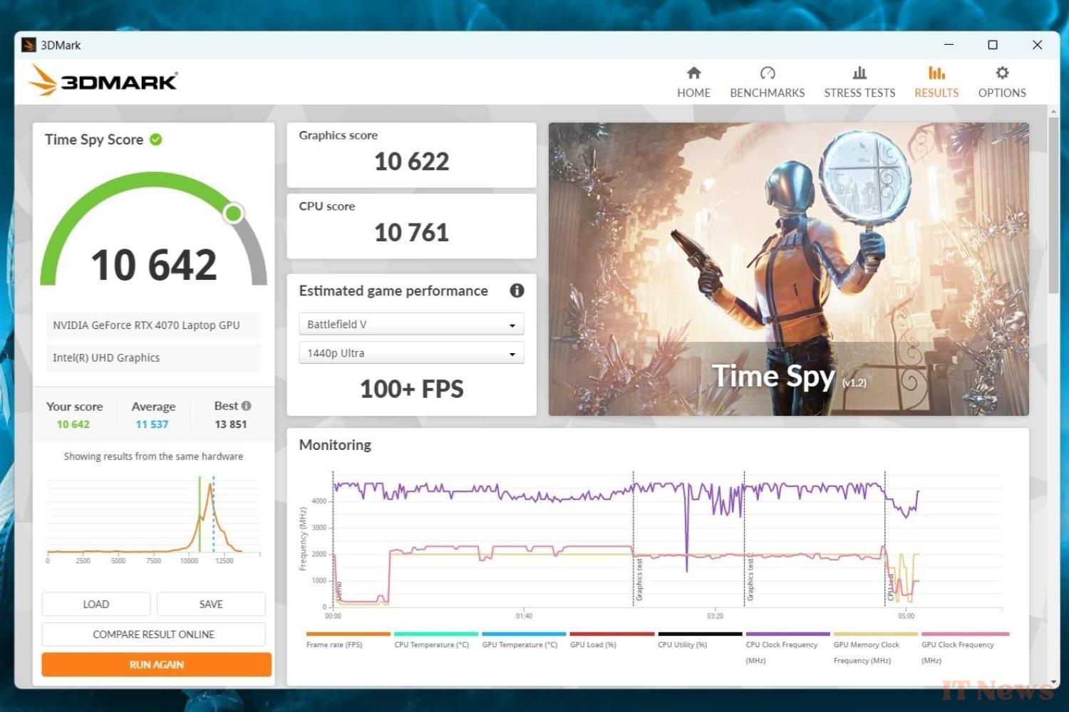 This hardware will therefore be a little light for certain demanding creative tasks, but that is not the objective of this Deputy. Its core business is video games. And at this level, it does rather well overall for a device in this category. At 1080p resolution and playing around a bit with the graphics settings and DLSS options, Nvidia's supersampling system, we had no trouble running Cyberpunk 2077, God of War or Elden Ring — two titles that aren't exactly very well optimized — between 60 and 80 frames per second.