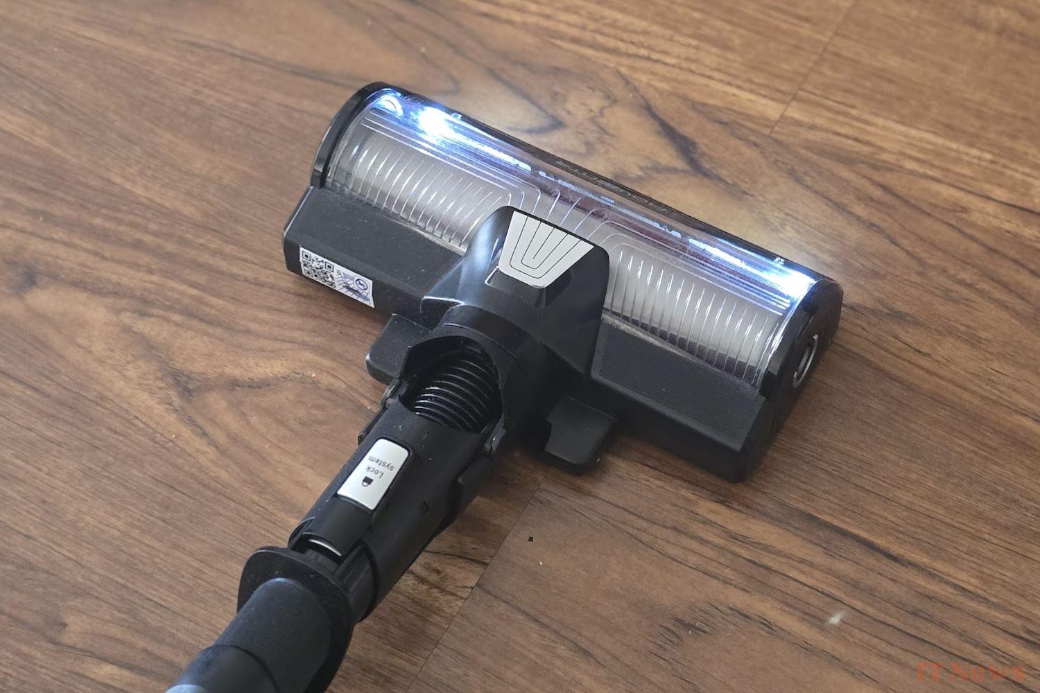 Thirty-somethings like us will also appreciate the excellent weight distribution on the device. The 3.2 kg main body integrates the removable battery directly into its handle, allowing balanced handling, without tension after several minutes of use. For its part, the motorized brush equipped with integrated LEDs illuminates the floor by automatically adjusting its intensity. A particularly useful feature under low furniture, but which does not equal that of the Tineco Pure One Station 5 Plus and its formidable beam of green light.