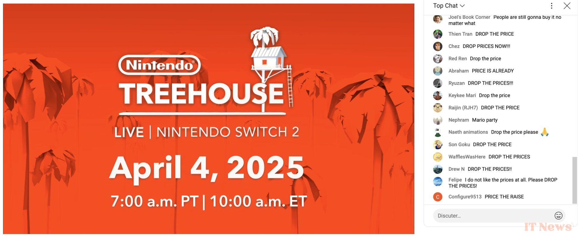 And players are making their frustration very clear: the YouTube chat for Treehouse, the online event where Nintendo showcases the Switch 2 games in more detail, is jammed with viewers demanding a price drop! So much so that it's the only message that sticks out - and not the quality of the games and the console, blurring the message the company wants to convey.