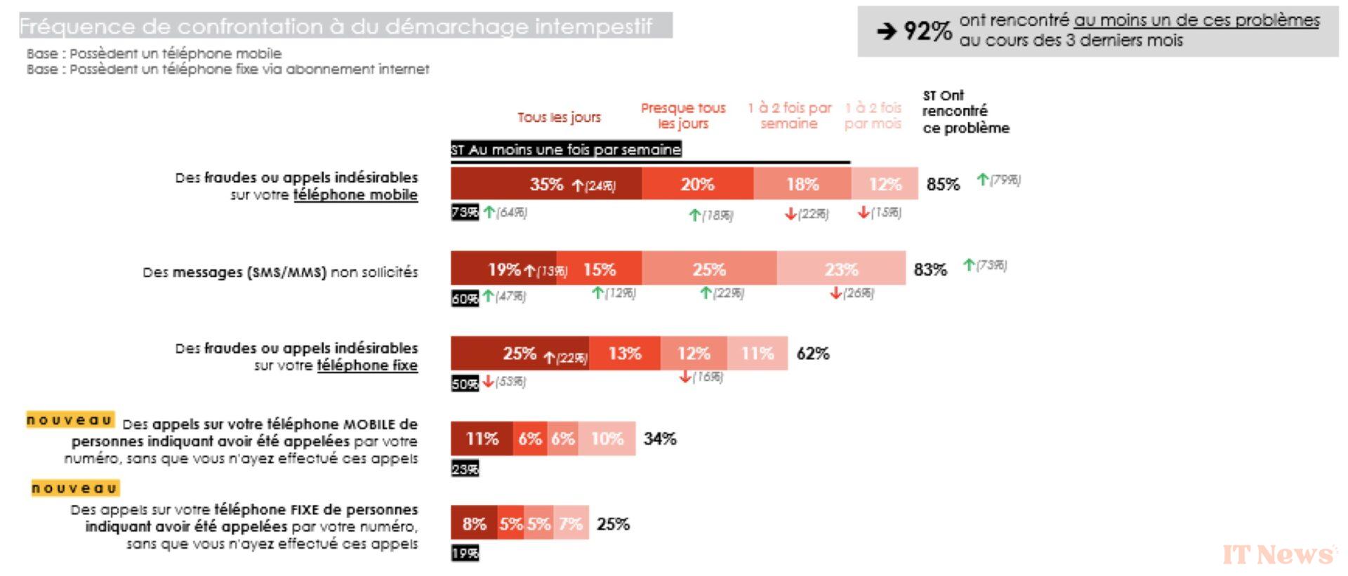 Unwanted calls are a scourge for smartphone users. We obviously suspected it, but the 2024 edition of Arcep's customer satisfaction observatory confirms the nuisance of unsolicited calls. "92% of those surveyed received at least one unwanted call or text message in the last 3 months and 55% receive almost one unwanted call per day," the regulator said.