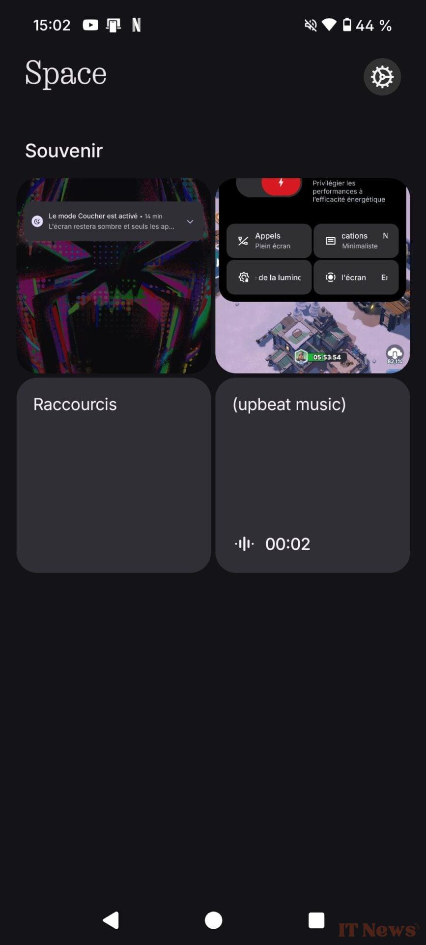 Speaking of productivity, let's finally talk about one of the main specificities of this CMF Phone 2 Pro: its Essential Key button and the Essential Space section linked to it. When pressed, a screenshot is taken. When long pressed, it is possible to record a voice message. Everything is automatically saved and organized via AI in Essential Space, an area designed to "organize your thoughts" by making suggestions and producing summaries. Unfortunately, not only will this feature likely be a gimmick, or even useless for many users, but above all, it is impossible to define another action with this button, which could have been used for something else. Too bad.