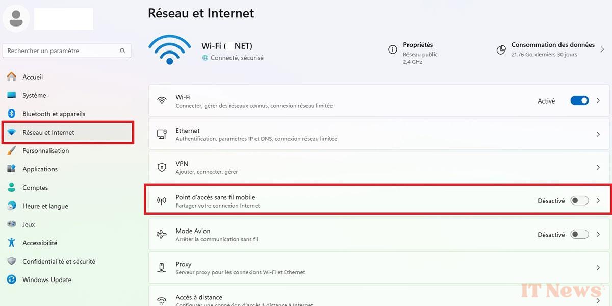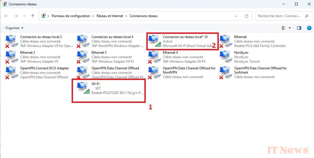 There is, however, a problem: most operator boxes do not allow you to configure a VPN directly. And even when it is possible, it is subject to numerous limitations, as on Freeboxes for example. There is still one option that works well: WiFi connection sharing from a PC.