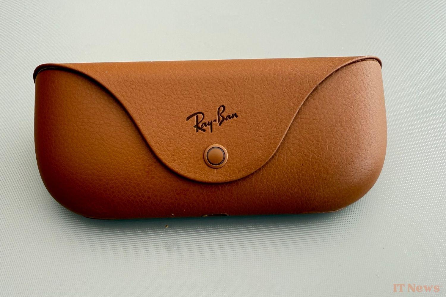 The glasses come with a charging case. Very elegant, it is very similar to the faux leather cases that usually accompany Ray-Ban pairs. It also has the same magnetic clasp. On the pouch, there is a luminous circle that indicates the charge level. If it is green, it means the charge is complete. An orange LED indicates that the battery is charging. The case itself is recharged via its USB-C port.