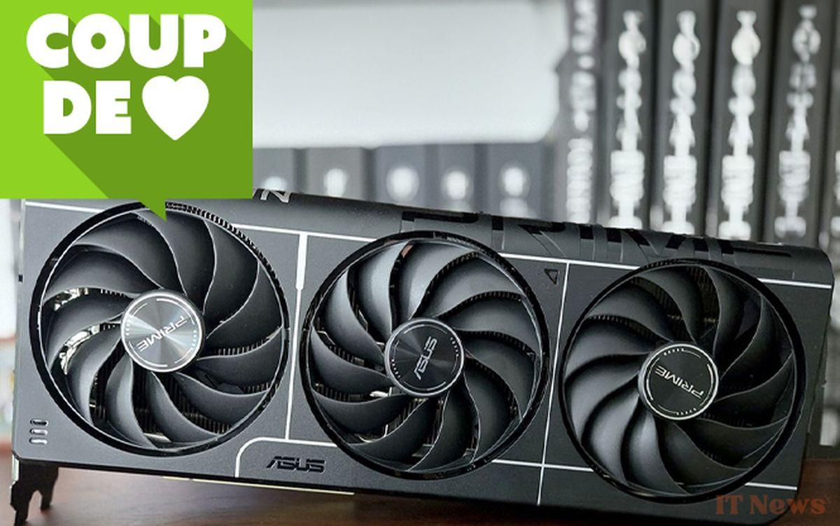The Asus PRIME we received for testing is, it must be said, very basic. As is often the case with these MSRP models, plastic reigns supreme in the construction, and you won't find RGB lighting anywhere. Nothing problematic: we still prefer to have the most optimized price possible. The design features three active fans for two occupied slots, which is quite aggressive for a card in this performance range.