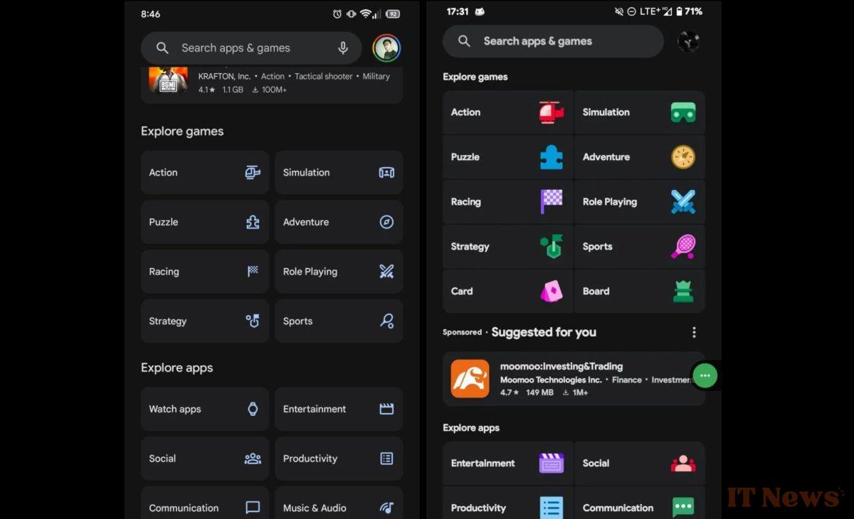 This time, it's the Play Store that's revealed in a different light. A Telegram user named Leontylerz had early access to it and shared an image of the new interface. Android Authority compared it with the current Play Store to give us a better idea of the changes made.