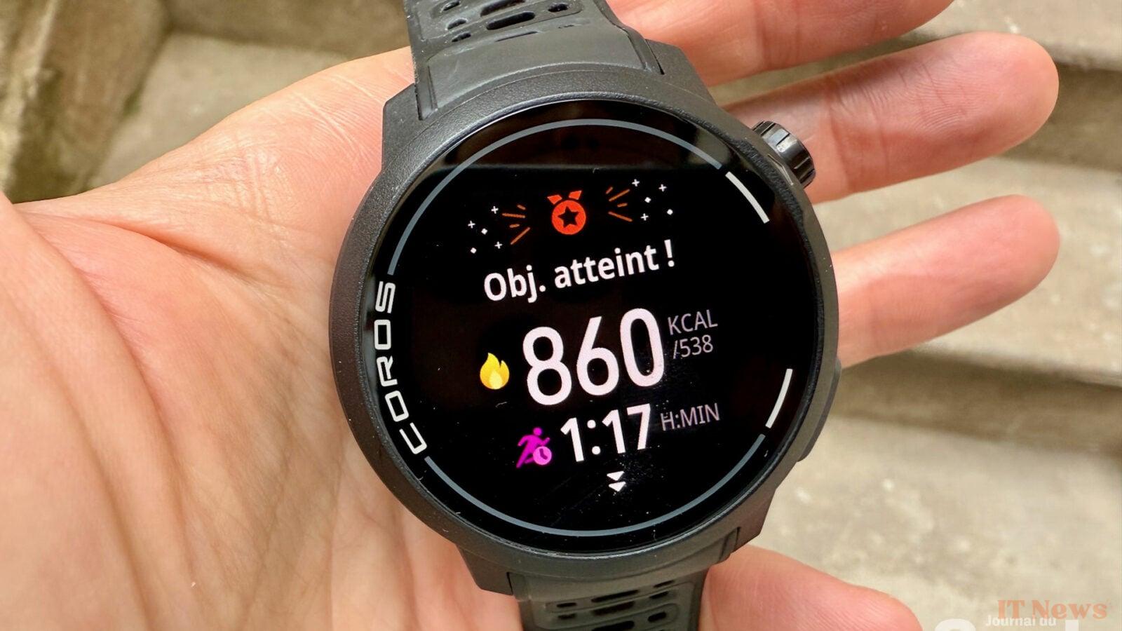 The dial + button system works perfectly, but you can also operate the watch via the touch screen. Navigation is fast, fluid, and works even in the rain (or with gloves). Coros has kept a minimalist but well-designed interface: weather widgets, daily summary, live heart rate, battery level, everything is accessible in two gestures.