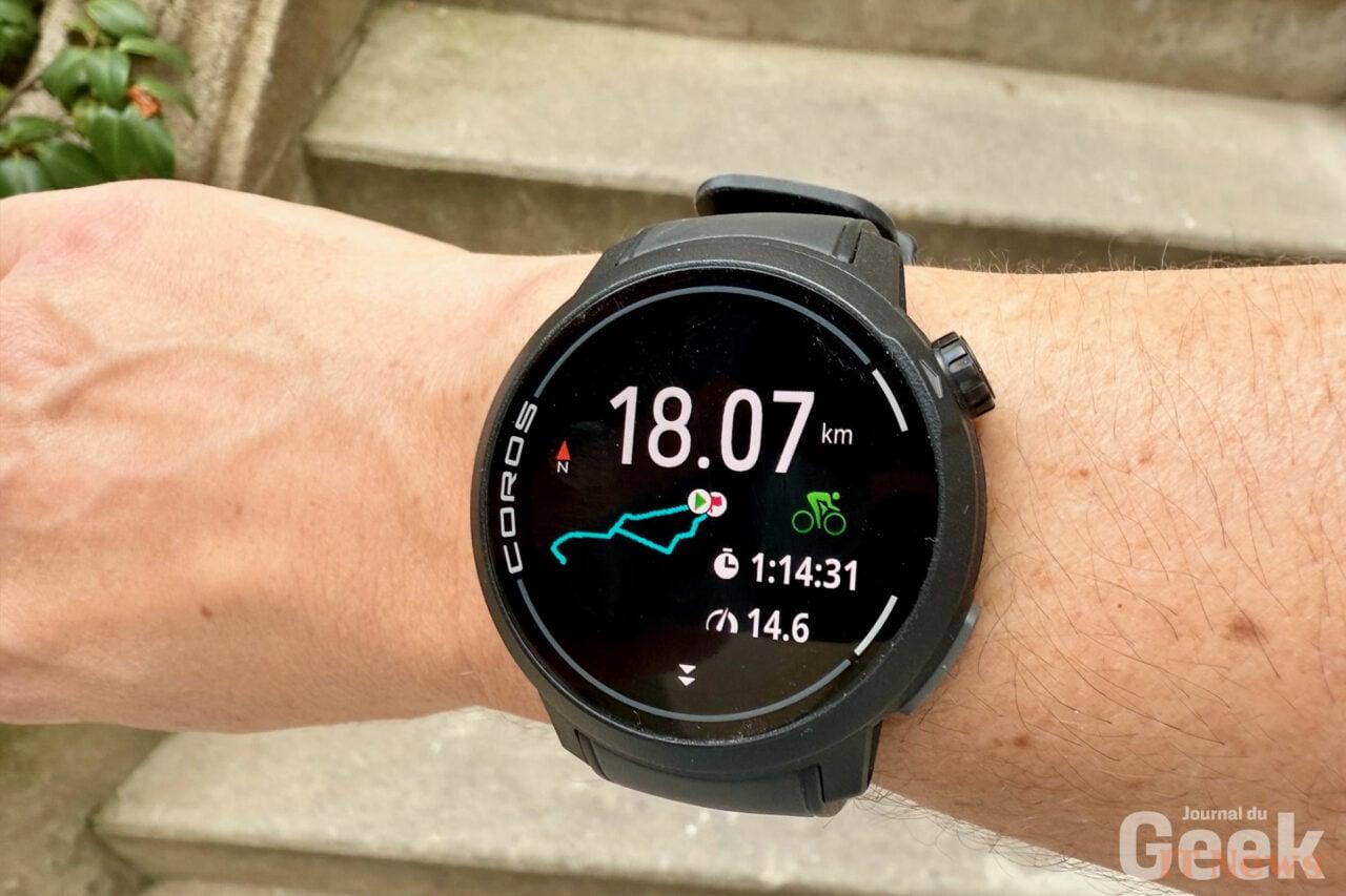 The big new feature is the onboard mapping. You can load topographic maps from the Coros app (via Wi-Fi) and follow a pre-recorded route. Navigation isn't dynamic (no recalculation), but you're notified if you go off-track. This is enough to get your bearings on a GR or mountain bike loop. Zooming is done using the wheel, and the screen remains readable even when moving.