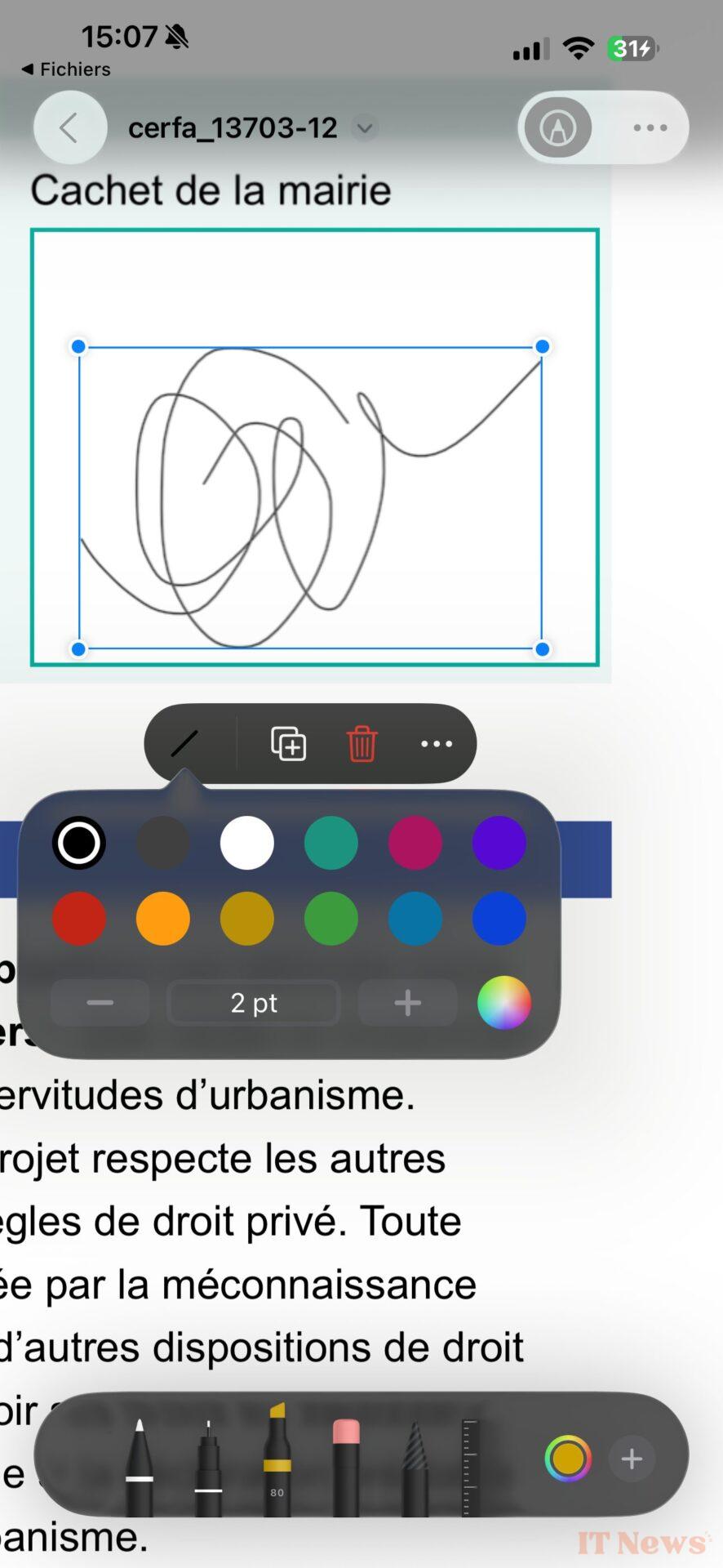 Just like on a Mac, Preview can annotate a document, fill out a form, or even add a handwritten signature to a PDF. These maneuvers can be done seamlessly from the iPhone screen. Files already offered a few tools for filling out and signing documents, but they weren't exactly easy to use. It must be said that the document manager's interface itself wasn't really adapted.