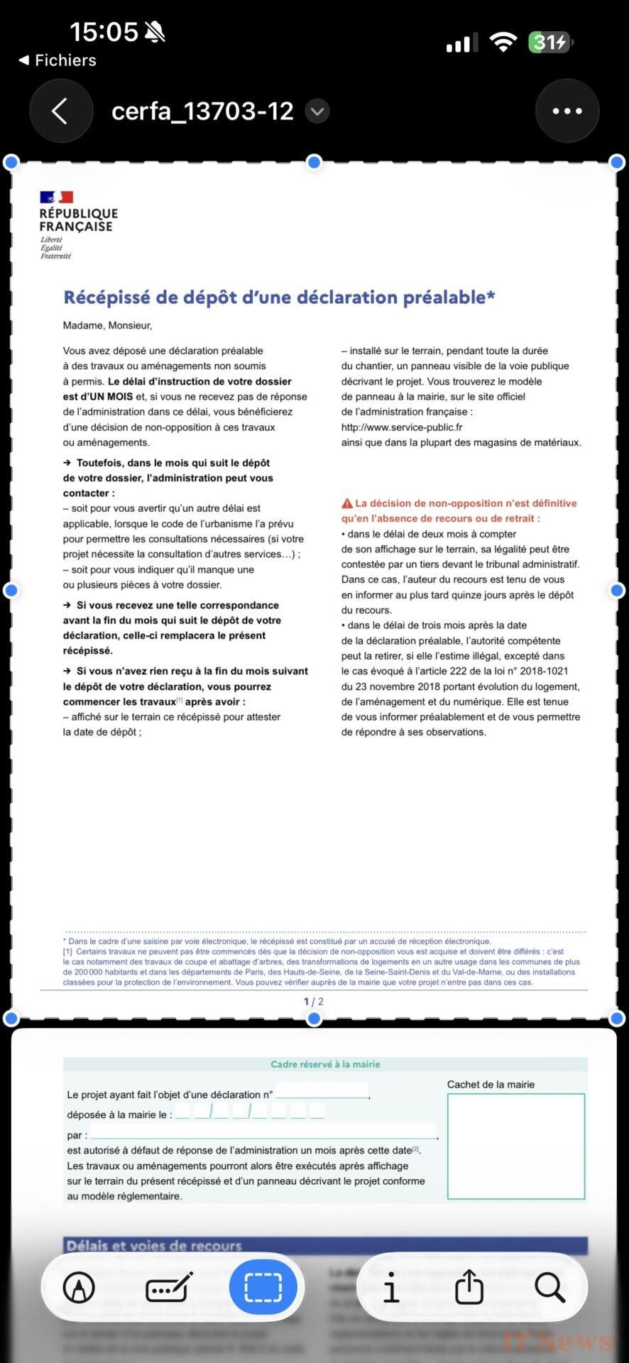 The iOS version of Aperçu also includes, of course, the fill function which automatically detects the input fields in which you can enter your information via the iOS virtual keyboard. Finally, a cropping tool, similar to the one existing on the macOS version of Aperçu, is also offered. The only downside is that Apple did not consider it necessary to integrate the redaction tool (to hide text or images).