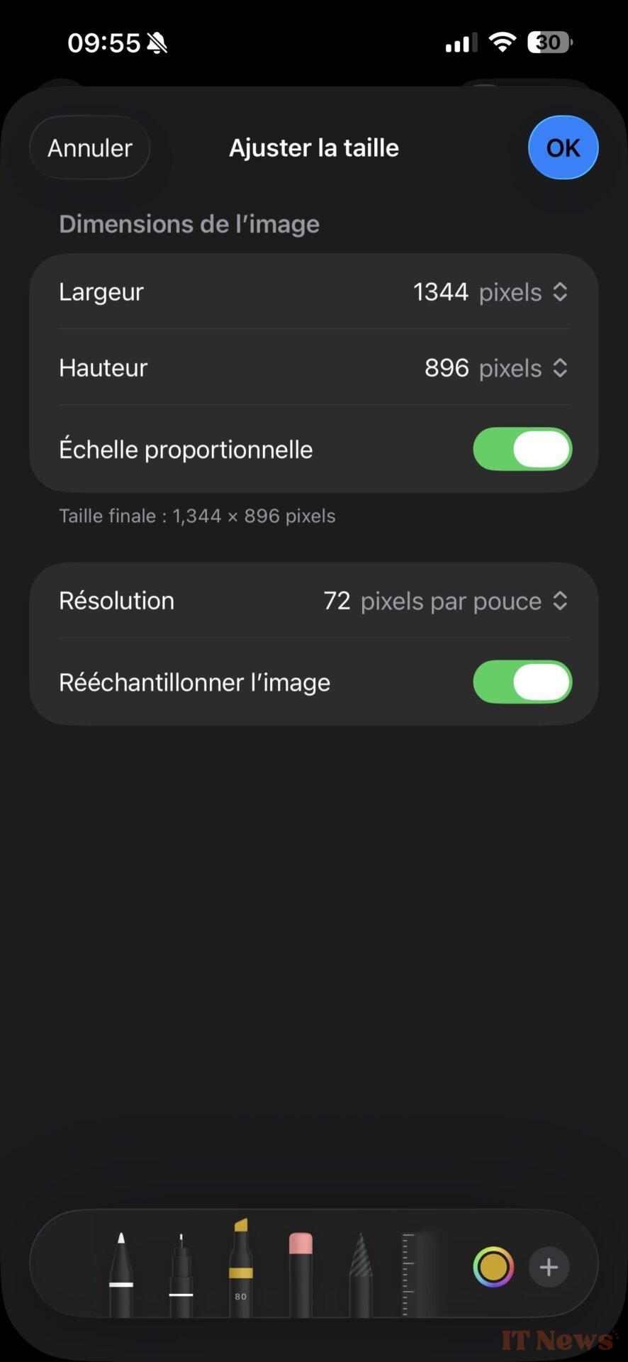 The other area where Preview will prove useful is in image management, including photos. Because in addition to the fact that the utility will allow you to add annotations, you can use it to modify your images. Preview can, among other things, apply rotations, launch a visual search with Visual Intelligence, but above all Adjust the size of an image and change its resolution. Two very practical options for sending image attachments without saturating the recipient's inbox.