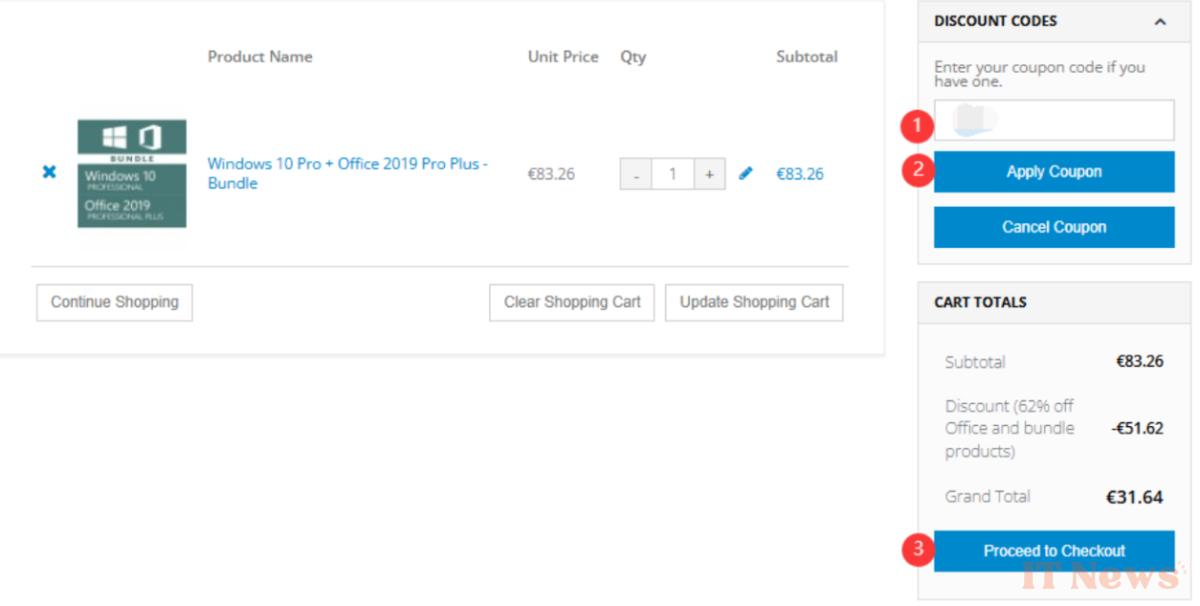 It's easy! Add your software to your cart, then go to your cart and enter the corresponding promo code. Then click on “Proceed to payment”.