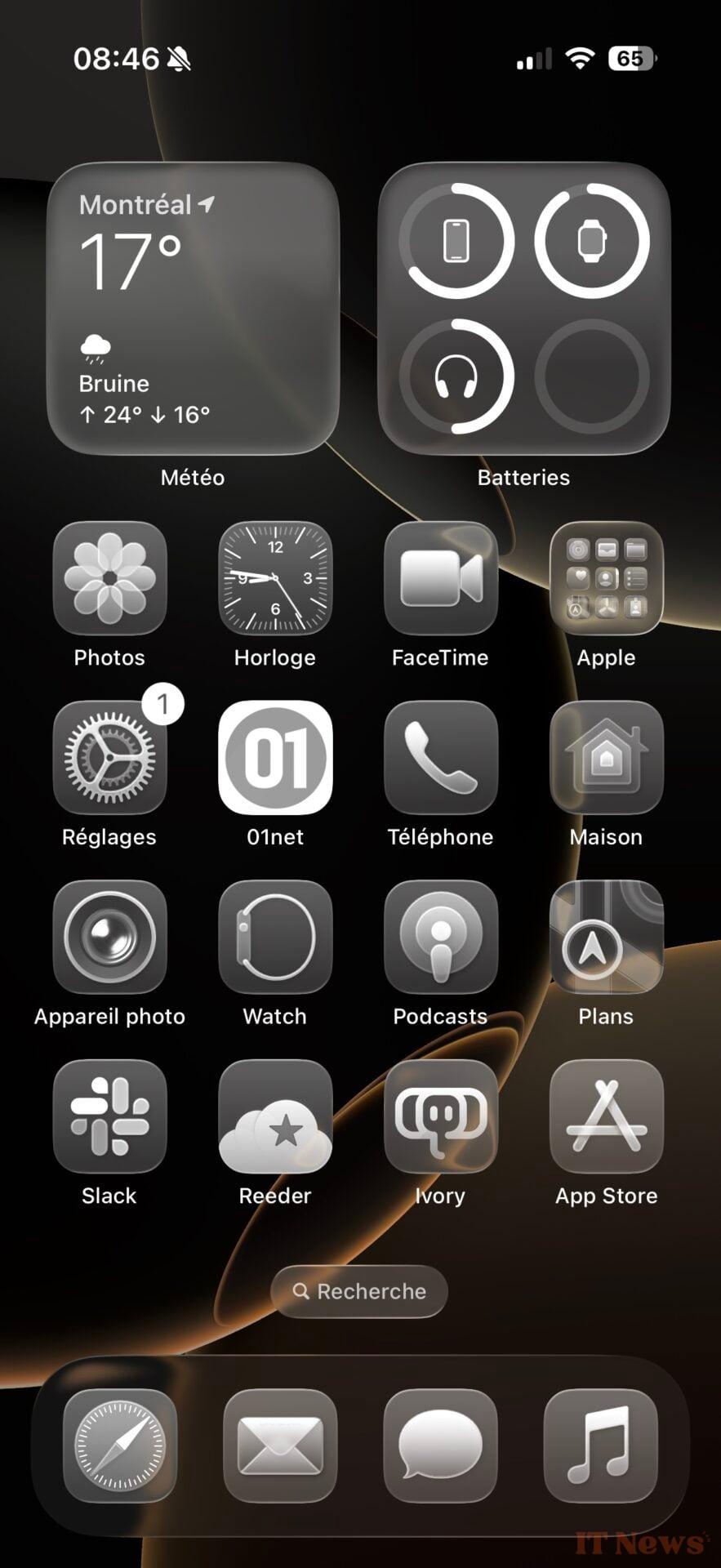 It's difficult to be exhaustive since Liquid Glass concerns all of Apple's operating systems, from iOS 26 to macOS Tahoe 26, including watchOS 26. We can applaud Apple's desire for change, which nevertheless leaves users with plenty of customization options - not everyone will appreciate the combination of the translucent interface with the icons of the same barrel, which give the impression of handling glass. Liquid Glass is an open-air construction site, which we will be following closely in the coming months before the launch of iOS 26 this fall.