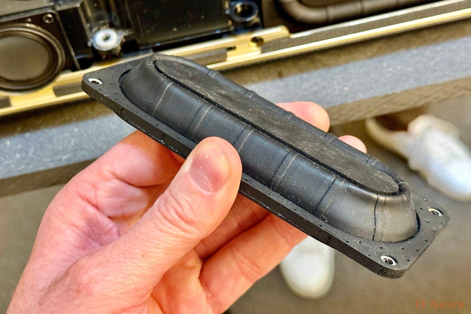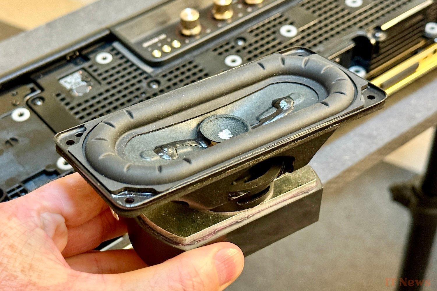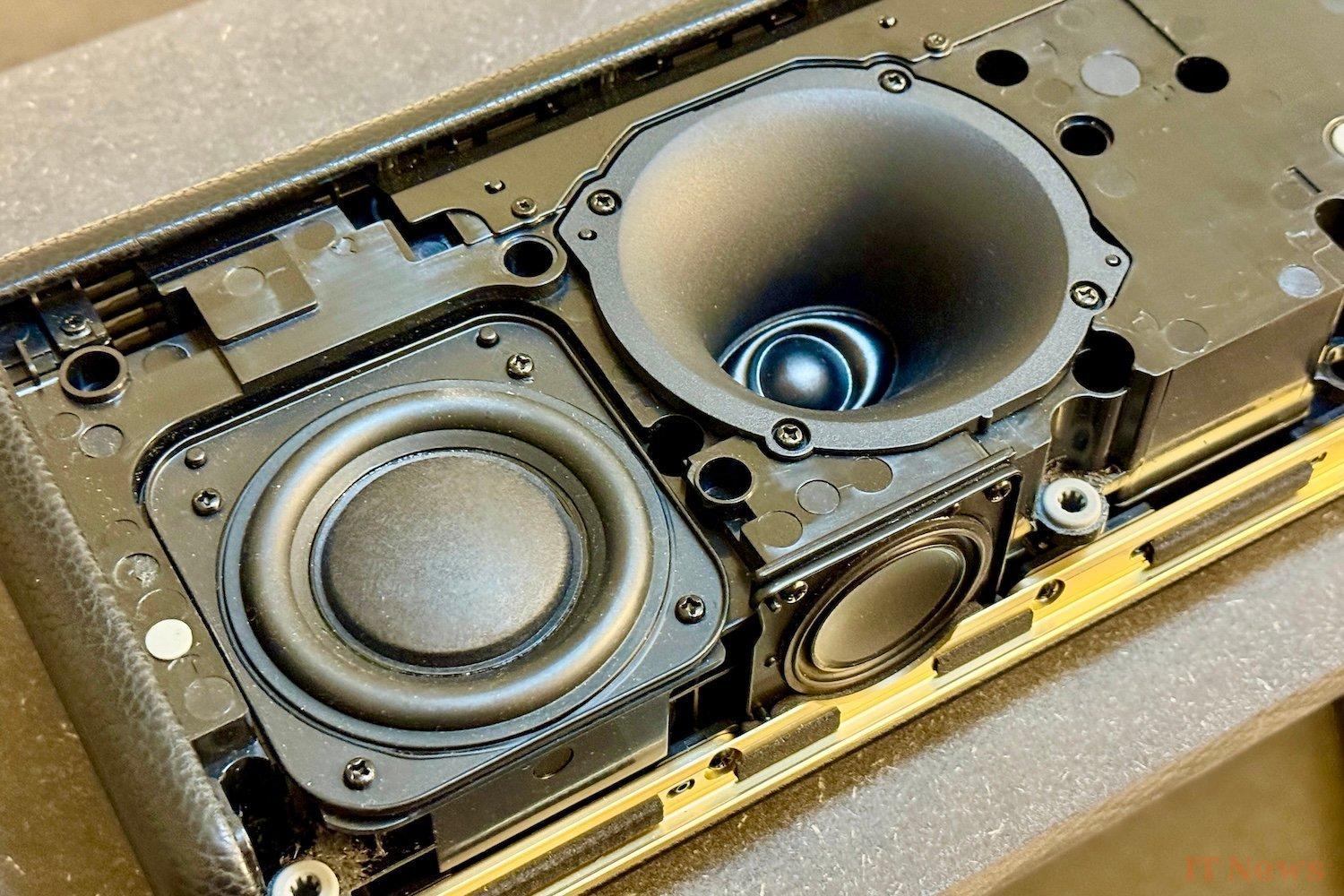 The two bass drivers were also the focus of the designers' attention, with no fewer than 17 prototypes before they finally found the right formula. As we were able to see at Marshall's Swedish headquarters, their excursion is very significant, guaranteeing suitable air movement and therefore promising bass. The system is also reminiscent of the one used by Sonos in its Arc Ultra: Sound Motion, originally developed by the Dutch company Mayht.