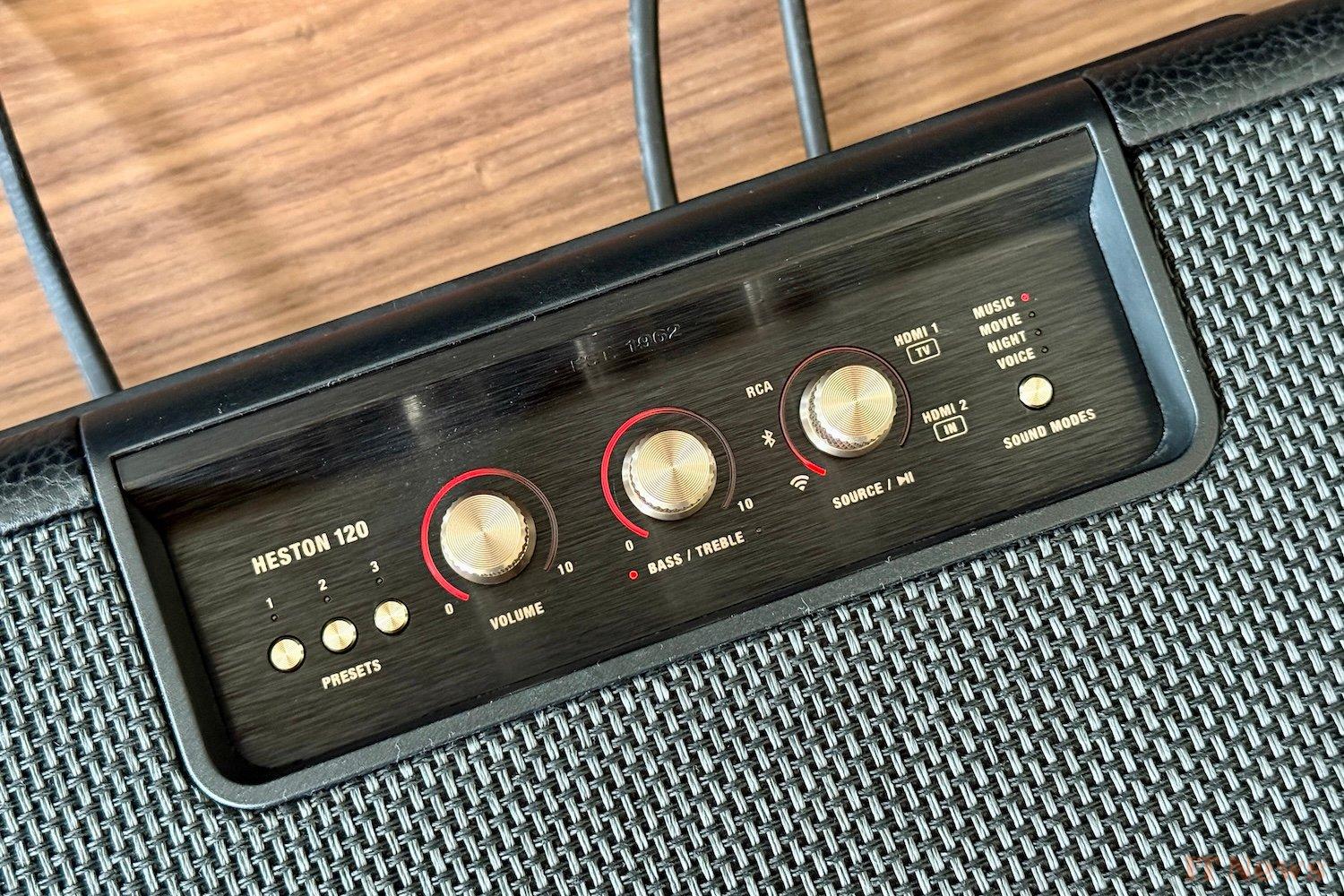 If there is one area where Marshall engineers have worked hard, it is audio. With 11 Class D amplifiers (for a total power of 150W), two 3-inch midrange drivers, two 0.8-inch tweeters, five 2-inch full-range drivers, and two 2-inch x 5-inch rectangular subwoofers, the Heston 120 is pretty well equipped.