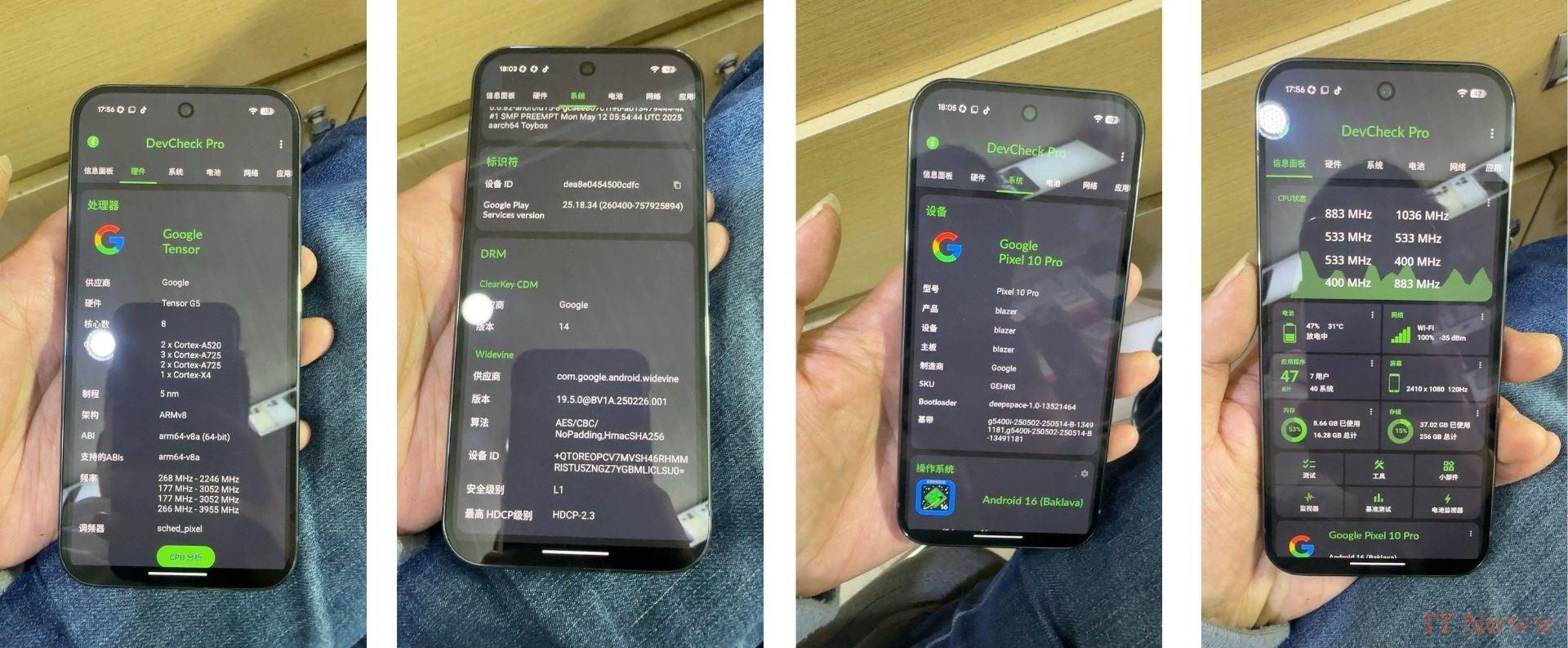 Even more interesting: the prototype includes a Tensor G5 chip, the technical specifications of which have been partially leaked via the DevCheck application. According to the shared screenshots, the processor would be based on an eight-core architecture: 2 Cortex-A520 cores, 3 + 2 Cortex-A725 cores, 1 Cortex-X4 core.