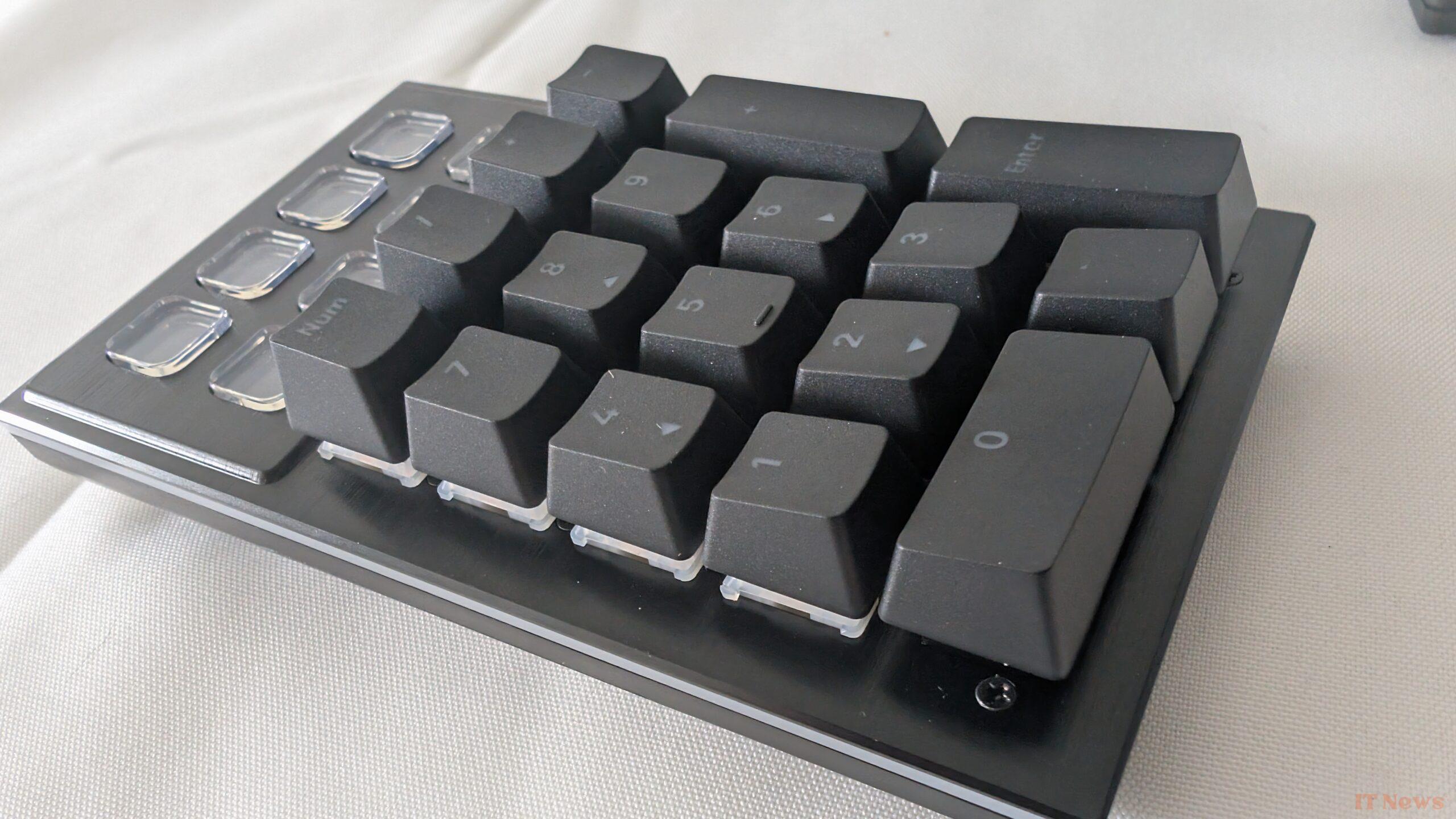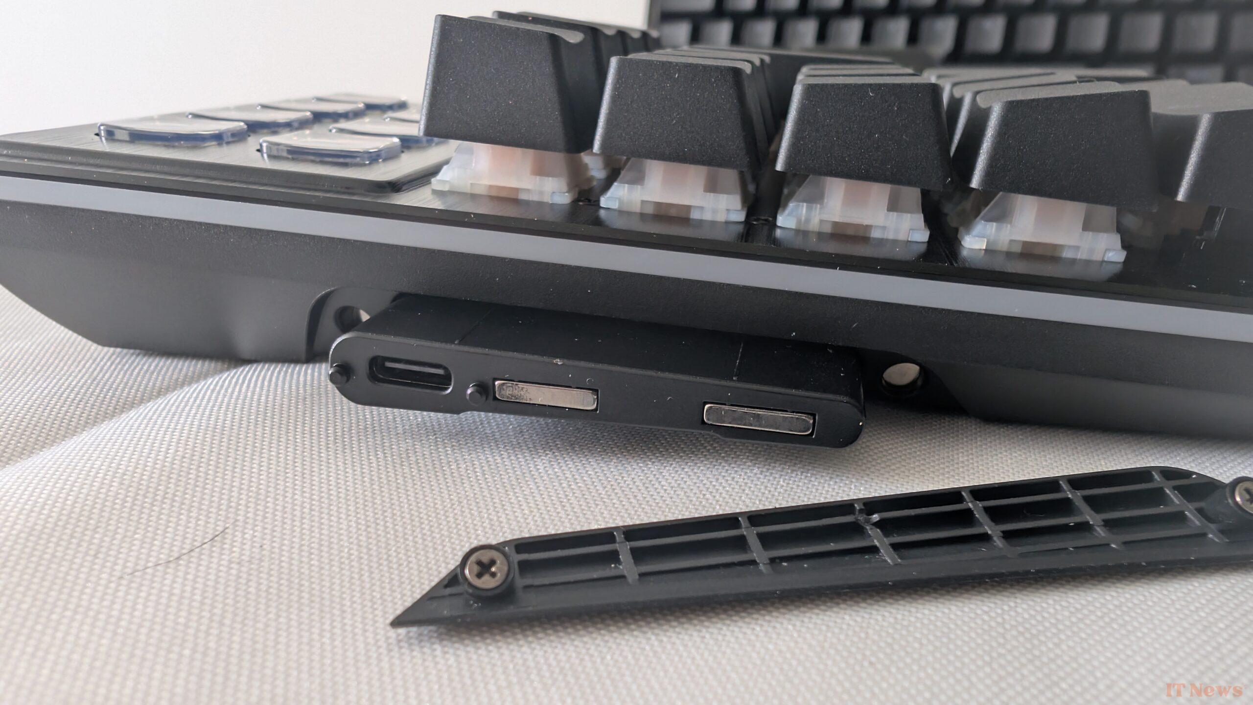 The latter is precisely one of the detachable elements that can be placed on the right or left side according to your wishes. Moreover, assembly and disassembly are done in no time. The notches are clearly visible, although remarkably well hidden by small magnetic plates so as not to be unsightly, and a small push button under the numeric keypad which will be used to pop out the USB-C socket on one side or the other. It is with this connection that we will associate it with the central block of the keyboard.