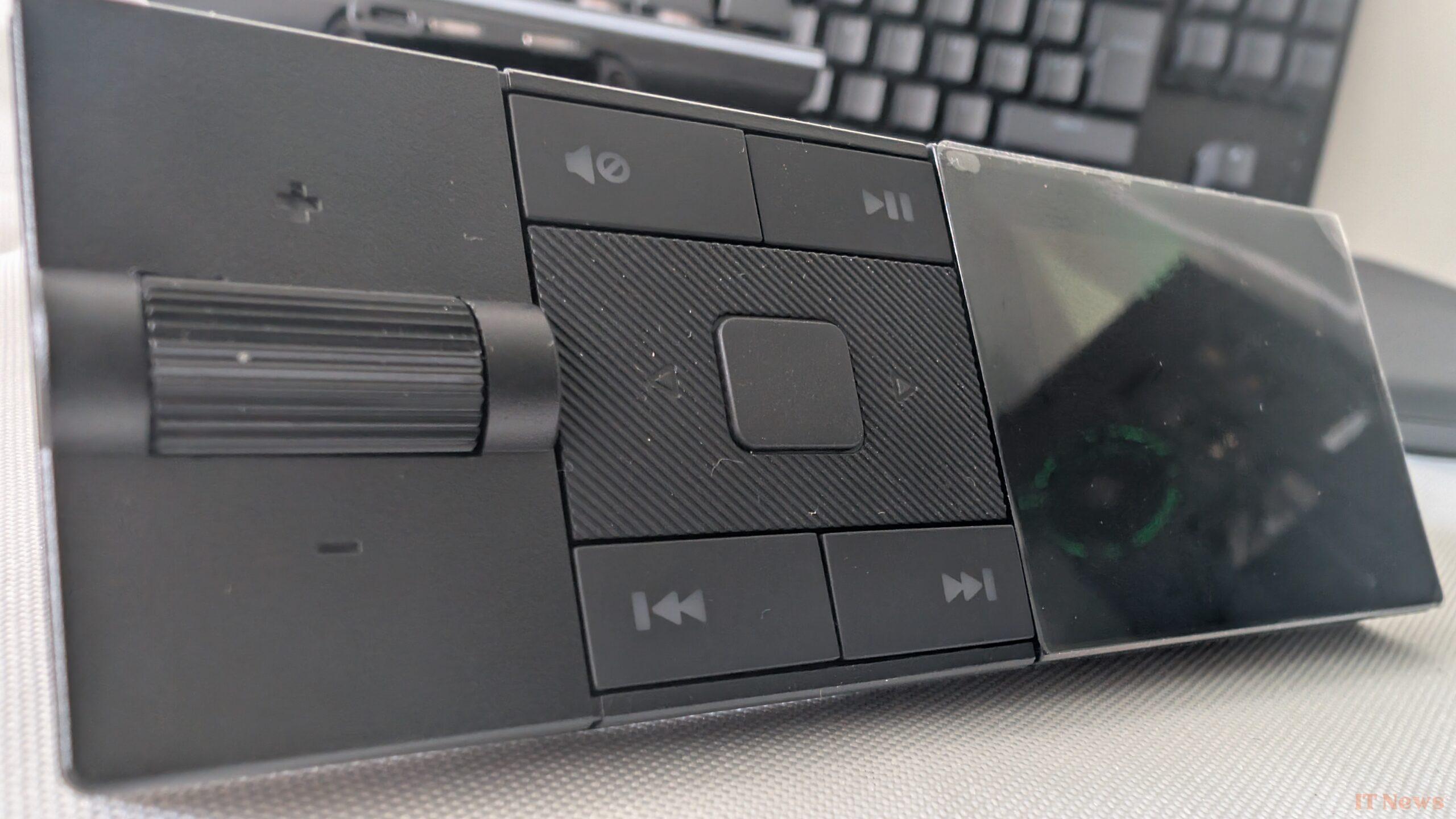 The numeric keypad also has all its keys obviously, but even more since it has a small HUB of eight customizable buttons similar to a Steam Deck. You can integrate all kinds of shortcuts, whether it's to manage your PC, streaming options, or launching certain applications. Finally, a third block is installed on the upper edge of the main keyboard. This is a media control module that's completely ordinary, but also more comprehensive. Here you can manage your profiles, keyboard brightness, or even media applications like Spotify, for example.