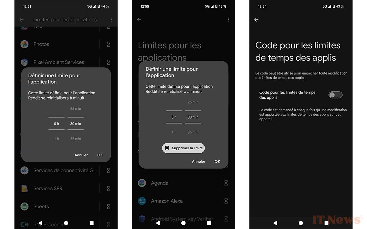 Another interesting option is to apply daily usage limits on each app. Once these limits are reached, the apps/sites in question will be paused and you will no longer receive any notifications from them. This is therefore useful for imposing restrictions on yourself and stopping wasting a lot of time on YouTube, Instagram, and the like: